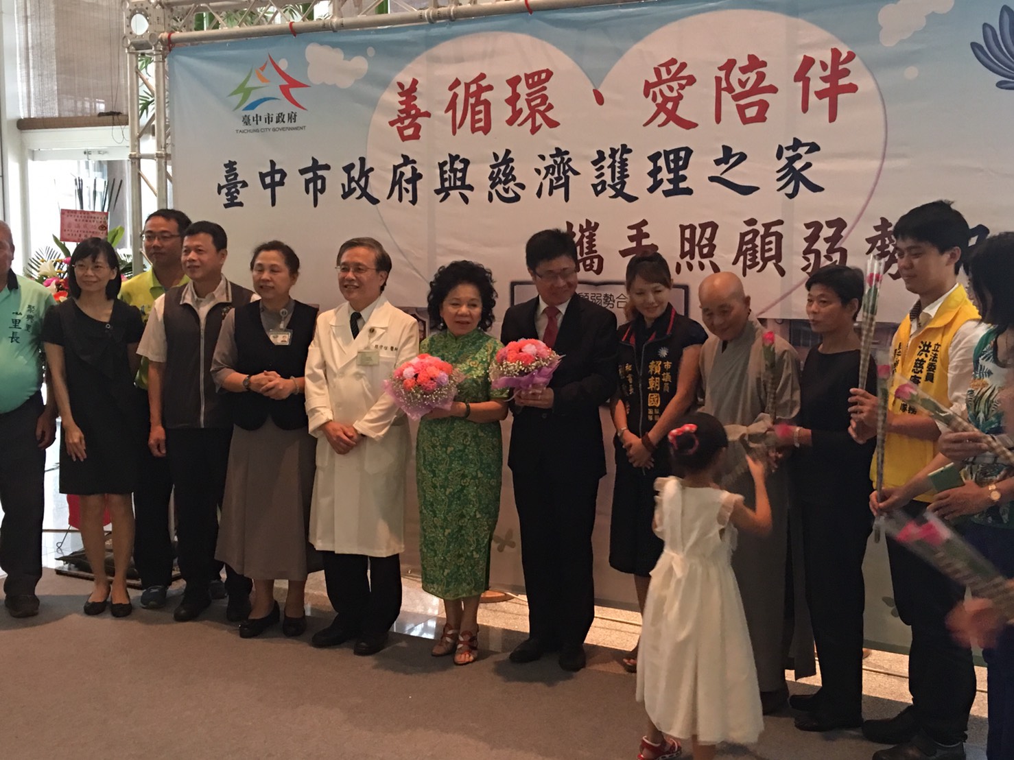 社會局與慈濟護理之家今(18)日舉辦「善循環、愛陪伴」攜手照顧弱勢記者會,一位六十多歲的賴女士特別出席獻花,表達對市府及慈濟護理之家的感謝。她說,哥哥今年七十歲,臥床多年,由她擔任臨時工,賺取微薄薪水支應哥哥的照顧費用;如今可入住慈濟護理之家免自付額床位,讓她卸下心中的大石頭,希望弱勢族群都能獲得協助。
