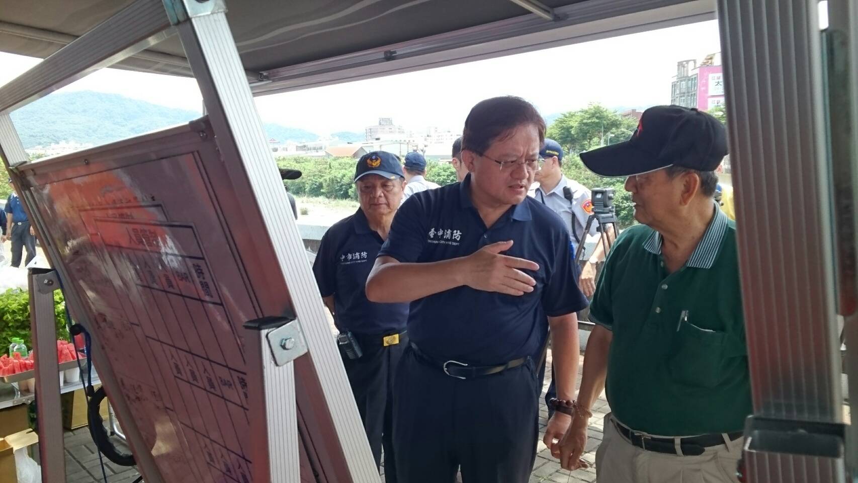 昨日下午在太平區溪洲橋傳出溺水意外,消防局在獲報後,共出動百餘搜救人員、數十輛救災車輛和船艇趕至現場搜救。副市長林陵三今日前往現場了解搜救情形並由消防局長蕭煥章說明現況。