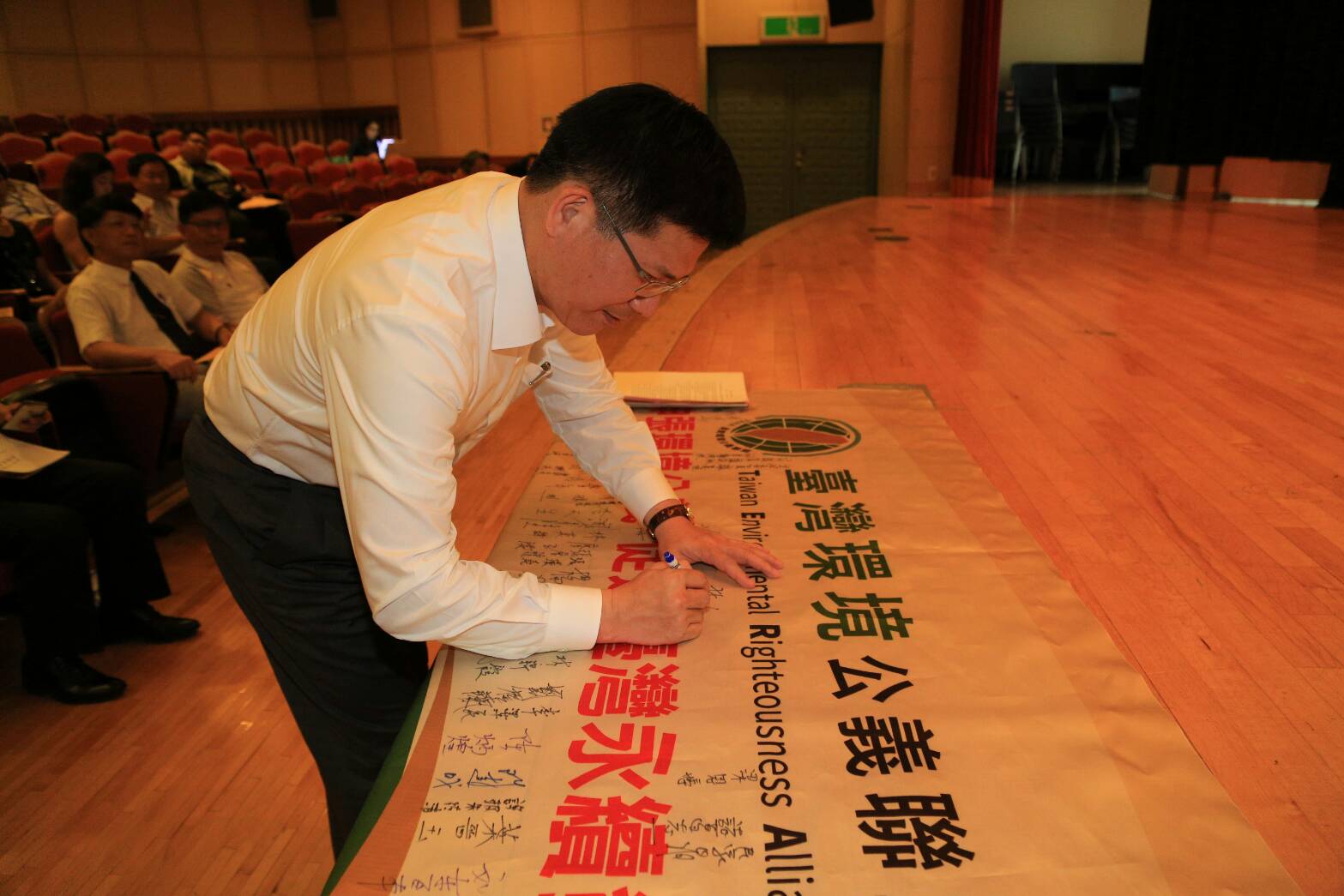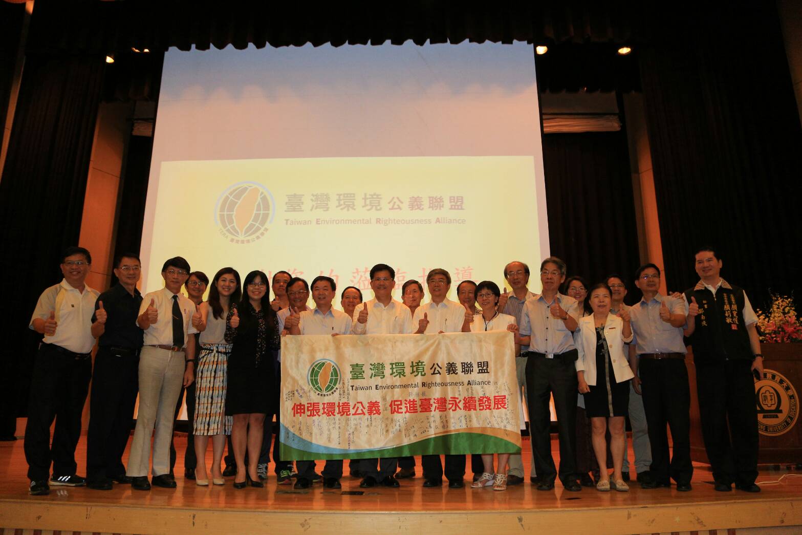 台灣環境公義聯盟成立記者會今日在台中教育大學盛大召開,現場也針對豐原東陽里山坡地遭濫墾案、后里正隆紙廠空汙案等2件環保案例進行現況說明並發表聲明,包括林市長、市府環保局長白智榮、市議員陳清龍、李天生、何明杰、江肇國等人也都到場共襄盛舉。