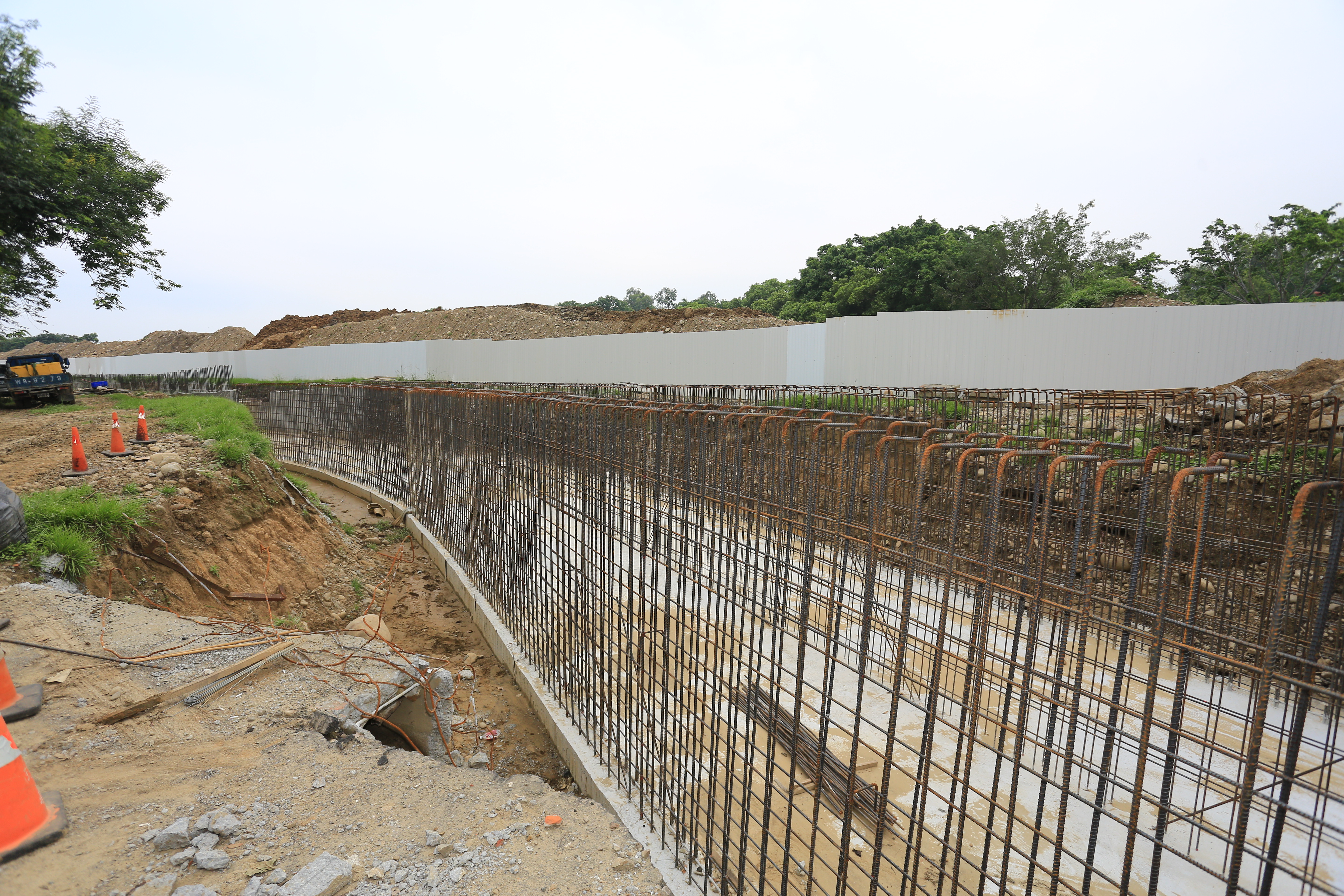 對此市府、地方民意代表與國防部積極協商,去年順利與軍方完成土地無償使用訂約程序,並由市府編列經費籌辦分洪道與滯洪池工程。目前工程全力趕工中,6月底已率先完成寬度6公尺、長度約480公尺的分洪道設施,並打開分洪口,此次颱風來襲時,將可讓上游的洪水分洪至頭汴坑溪,減緩下游淹水情況。