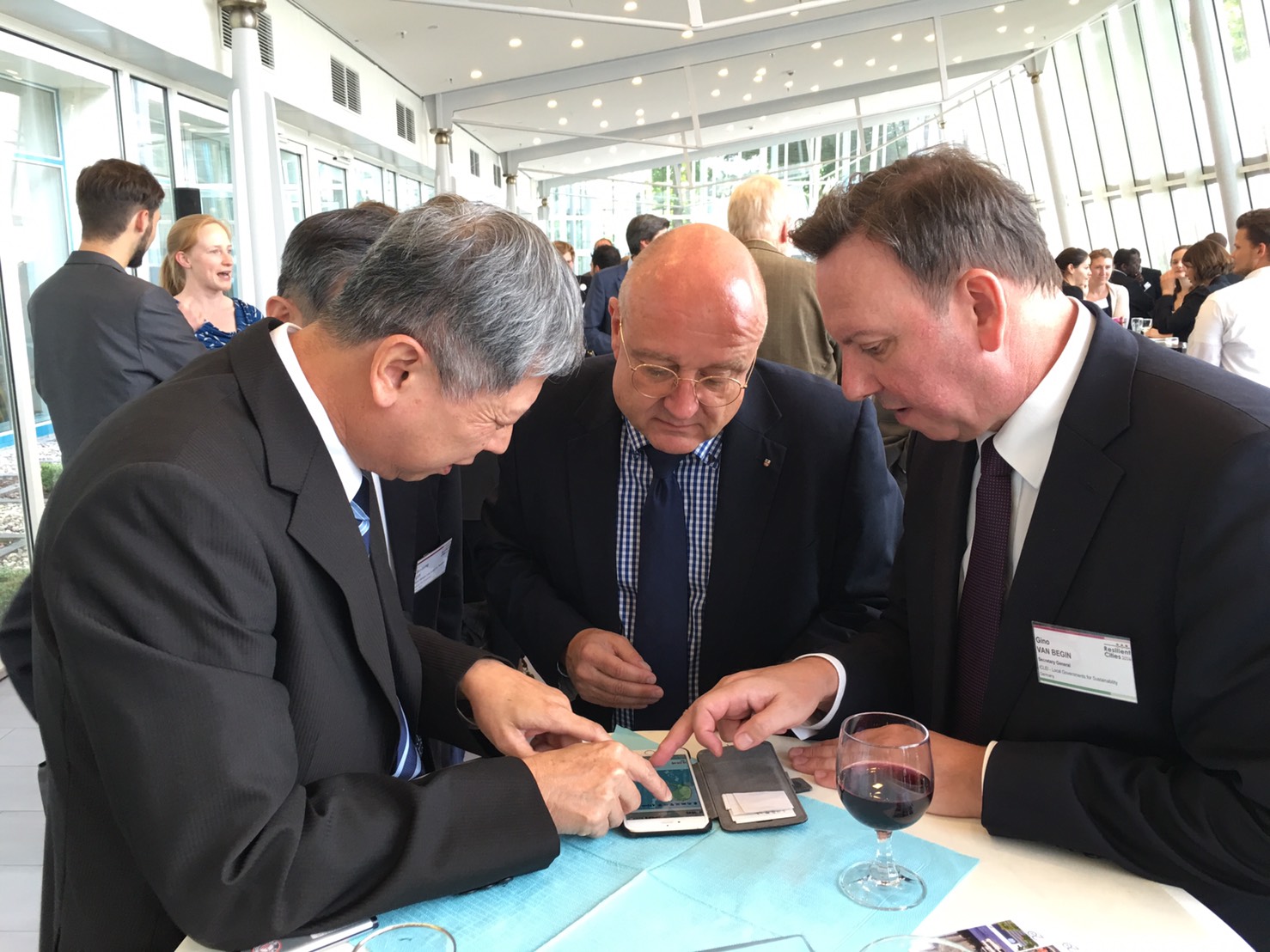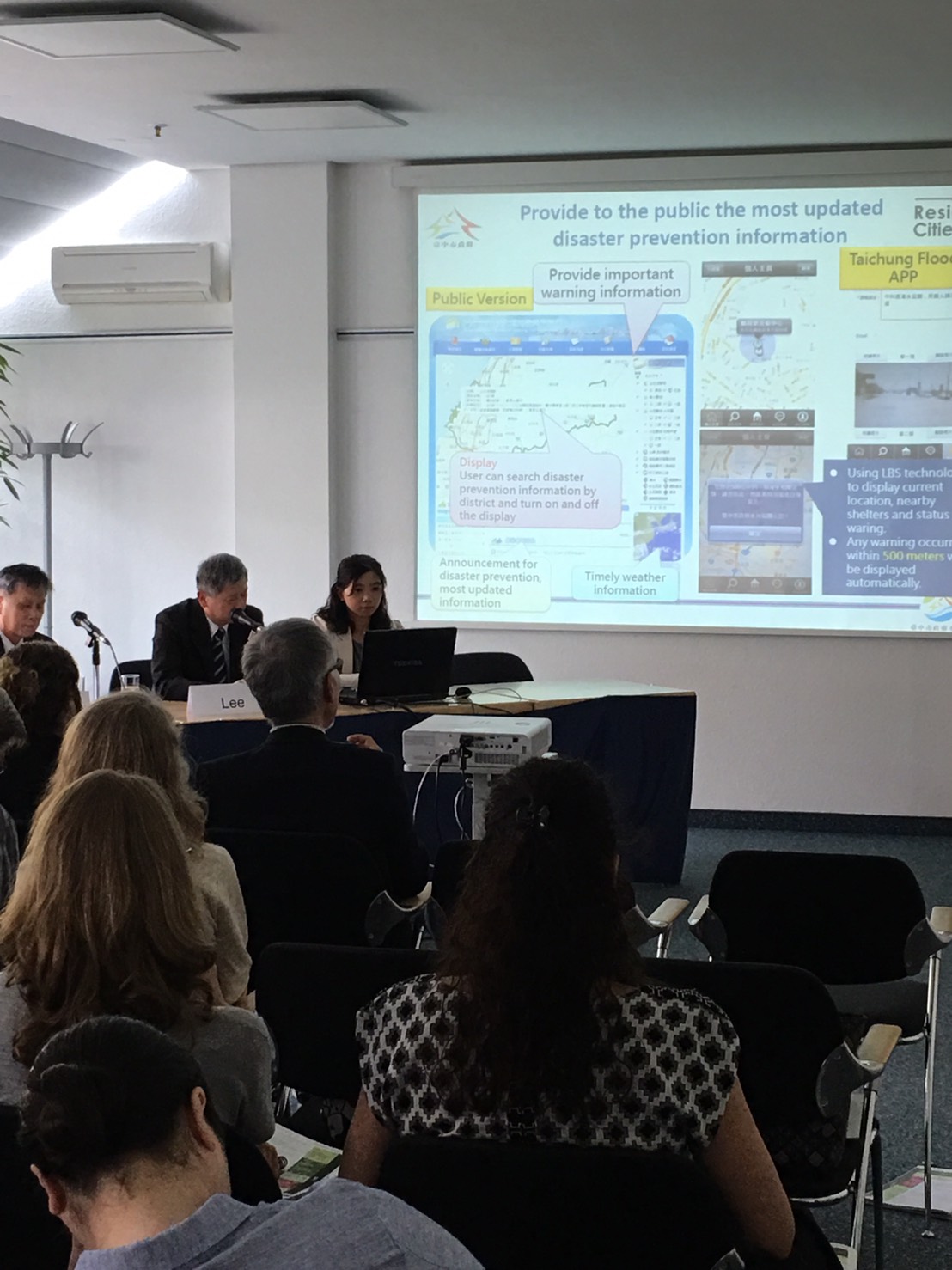 這項議題不僅引起ICLEI秘書長Mr.Gino Van Begin關注,更邀請德國波昂副市長Mr.Reinhard Limbach及副秘書長Mrs.Monike Zimmermann一同了解「臺中水情APP」提供的資訊,肯定台中市政府推動韌性城市的努力,也對資訊的整合及公開相當讚賞。