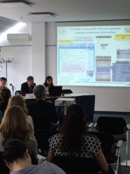 李副秘書長分享台中市在氣候變遷的衝擊下,如何運用數據資訊整合降低災損,並操作水情監測網說明台中市水情監測系統,介紹政府與民眾如何在第一時間接收重要的警戒資訊及災情訊息;他也透過「臺中水情APP」實際講解台中市面臨颱風災害的應變情形,讓防災作為由被動提升為主動預警、疏散撤離,並與協力單位合作,減少災害損失。