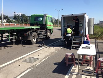 柴油引擎廢氣不僅是空汙移動汙染源之一,世界衛生組織(WHO)所屬國際癌症研究署(IARC)更已正式將柴油引擎廢氣列為致癌物,將可能對人體健康產生嚴重傷害。為杜絕台中市烏賊車汙染,市府環保局昨日結合中部及雲嘉南空品區檢測能量,跨縣市合作於台中港區各主要出入口,擴大辦理聯合稽查,以多點同時防堵方式,盼降低台中市烏賊車輛數。