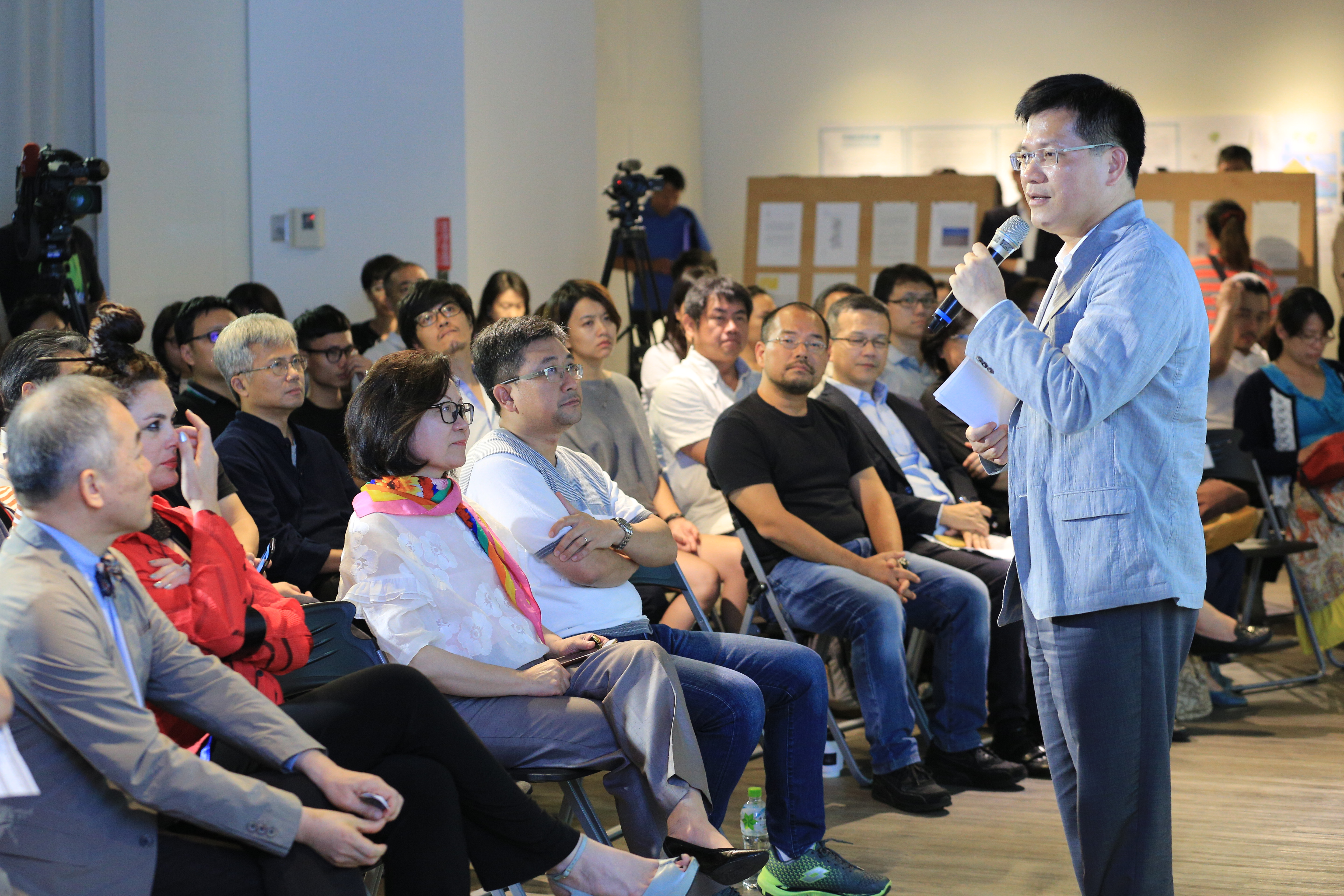 在座談會上,建築師謝文泰建議市府同仁能參加各建築系所學生畢展,聽聽學生的創新思維;也建議市府成立「Cityhallfront」引領討論、接收各種改造城市的創意;並試著減輕府內建築專業人才的工作負荷,從市府內部產生創意等,都獲得林市長正面回應。