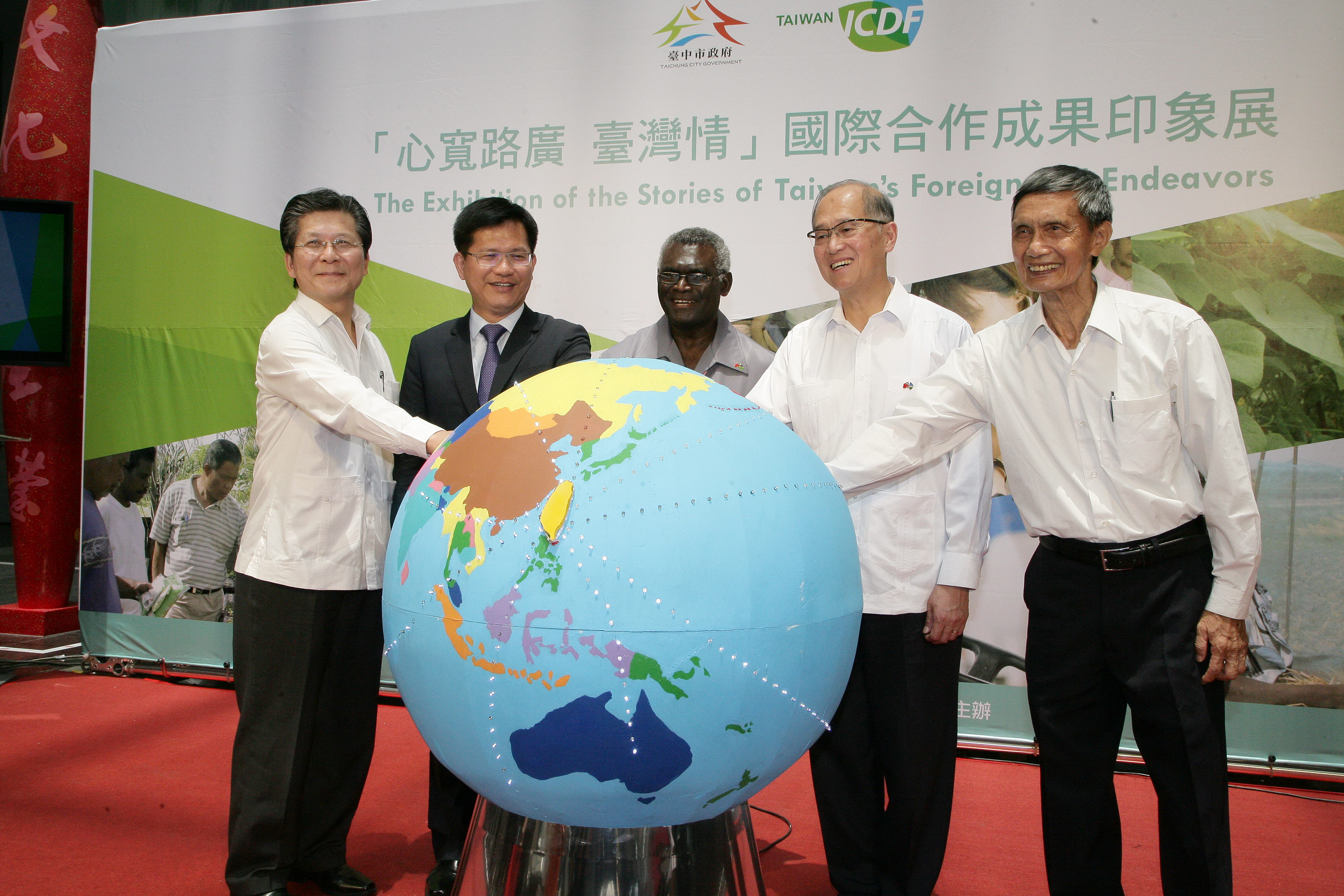 市府社會局與國合會今(26)日在台灣大道市政大樓舉辦展覽揭幕儀式,由市長林佳龍、外交部長兼國合會董事長李大維、索羅門群島總理蘇嘉瓦瑞(Manasseh Sogavare)伉儷、市府社會局長呂建德等人,共同宣告活動起跑。