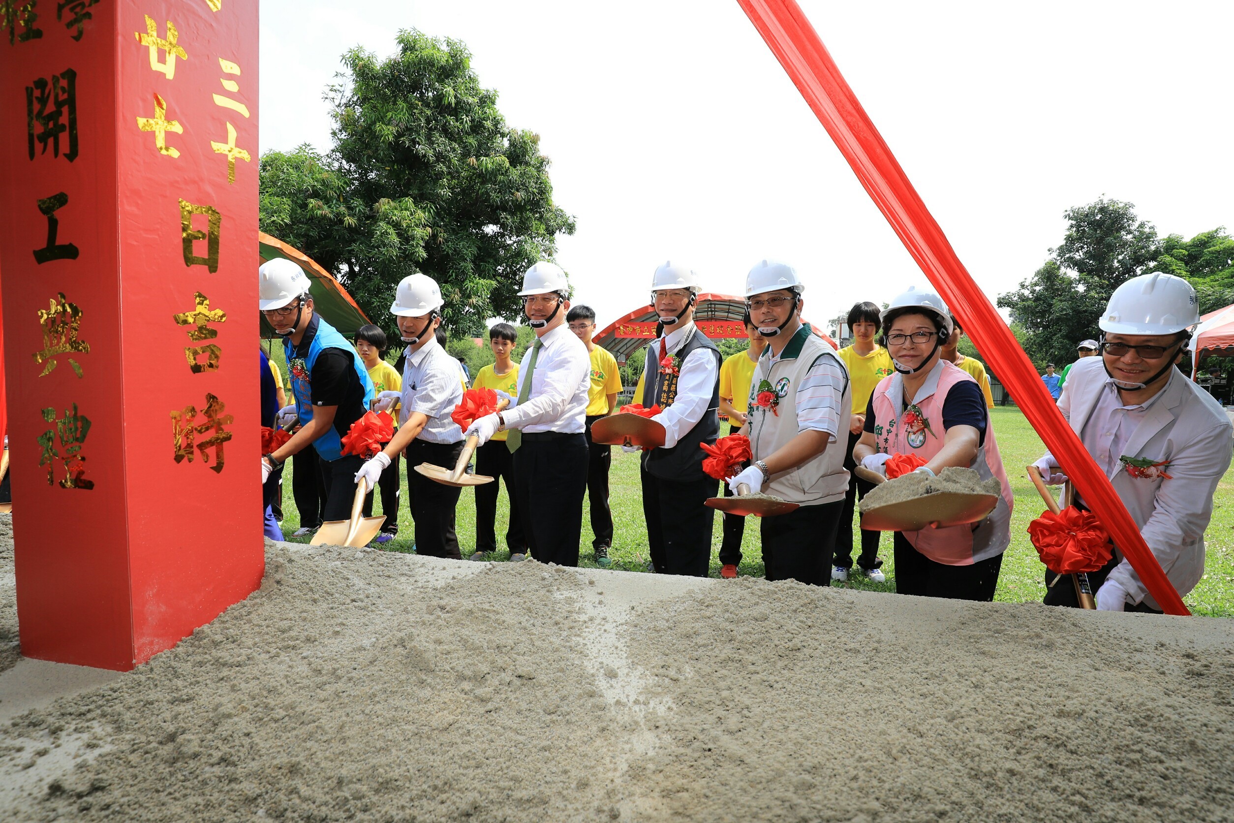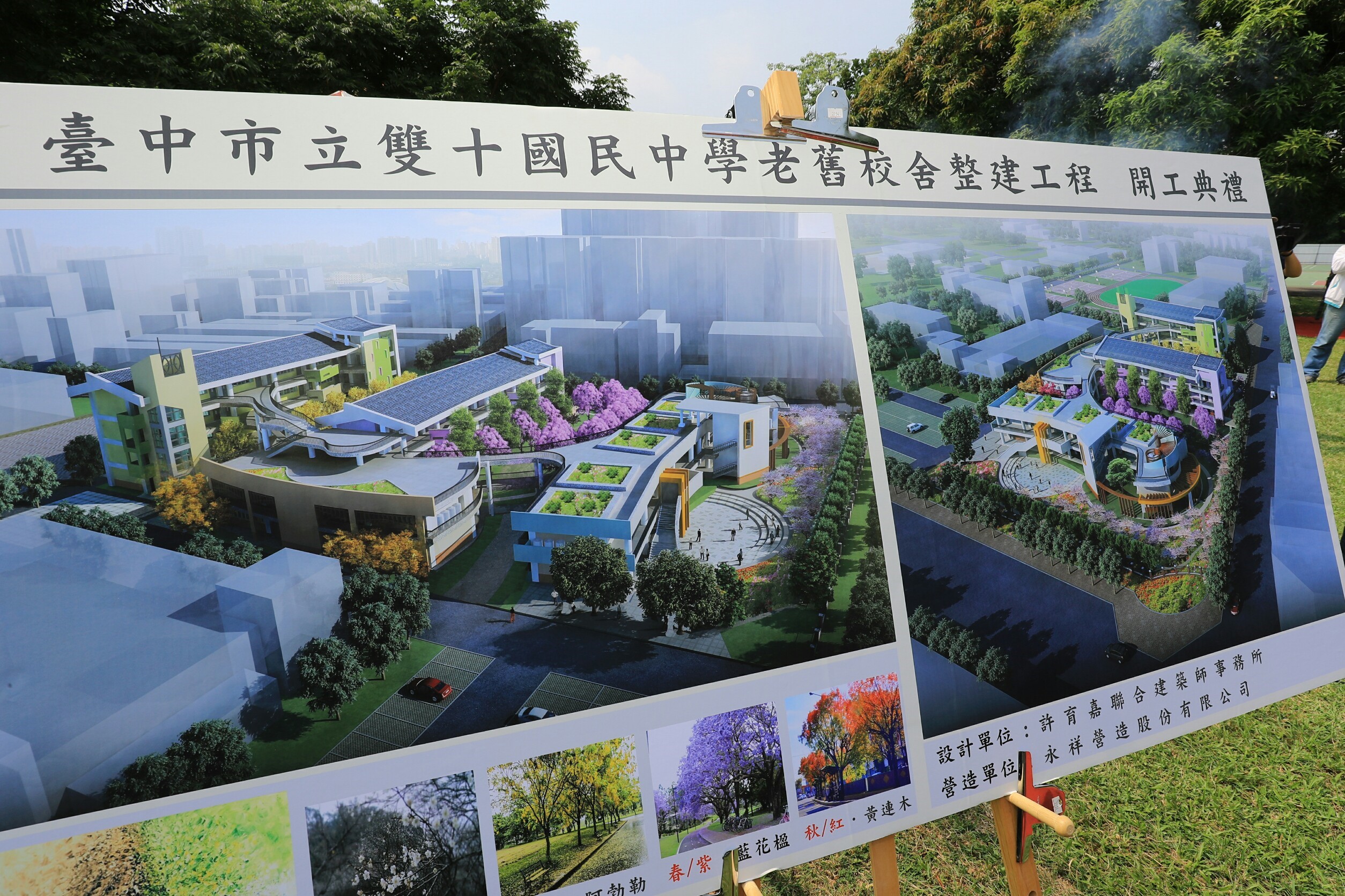 林市長表示,雙十國中老舊校舍整建工程在各界努力下,獲得教育部1億9,206萬元重建學校老舊教室經費,今天正式開工,未來落成後,雙十文化流域將新增一亮點地標。