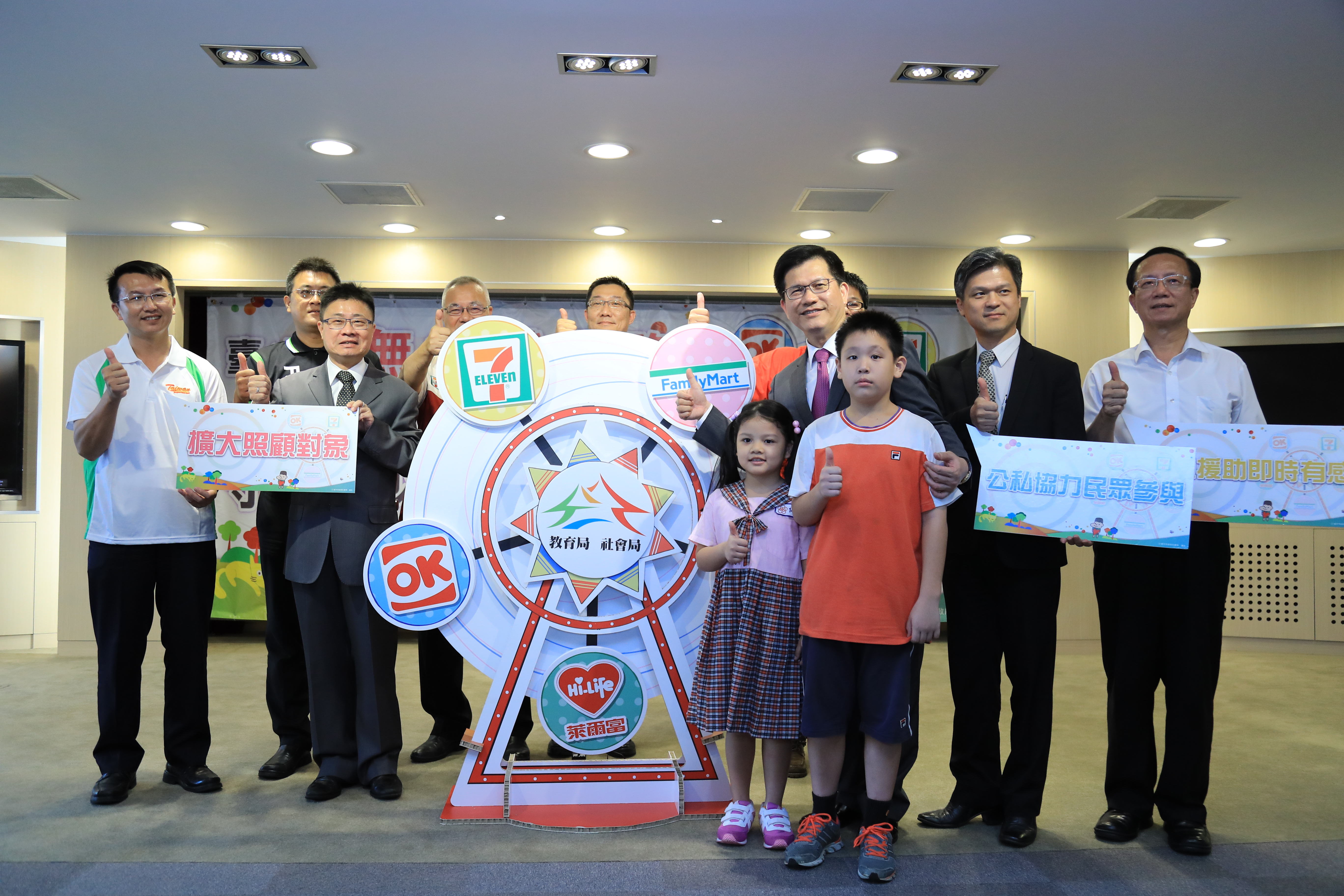 在社會局長呂建德、教育局長彭富源、警察局長陳嘉昌陪同下,林市長今(1)日出席「無飢餓網路『愛心守護站』合作記者會」,他感謝5大超商給予弱勢兒少的關懷與付出,並希望藉由報導,讓更多弱勢孩子知道「愛心守護站」的存在,適時尋求幫助。