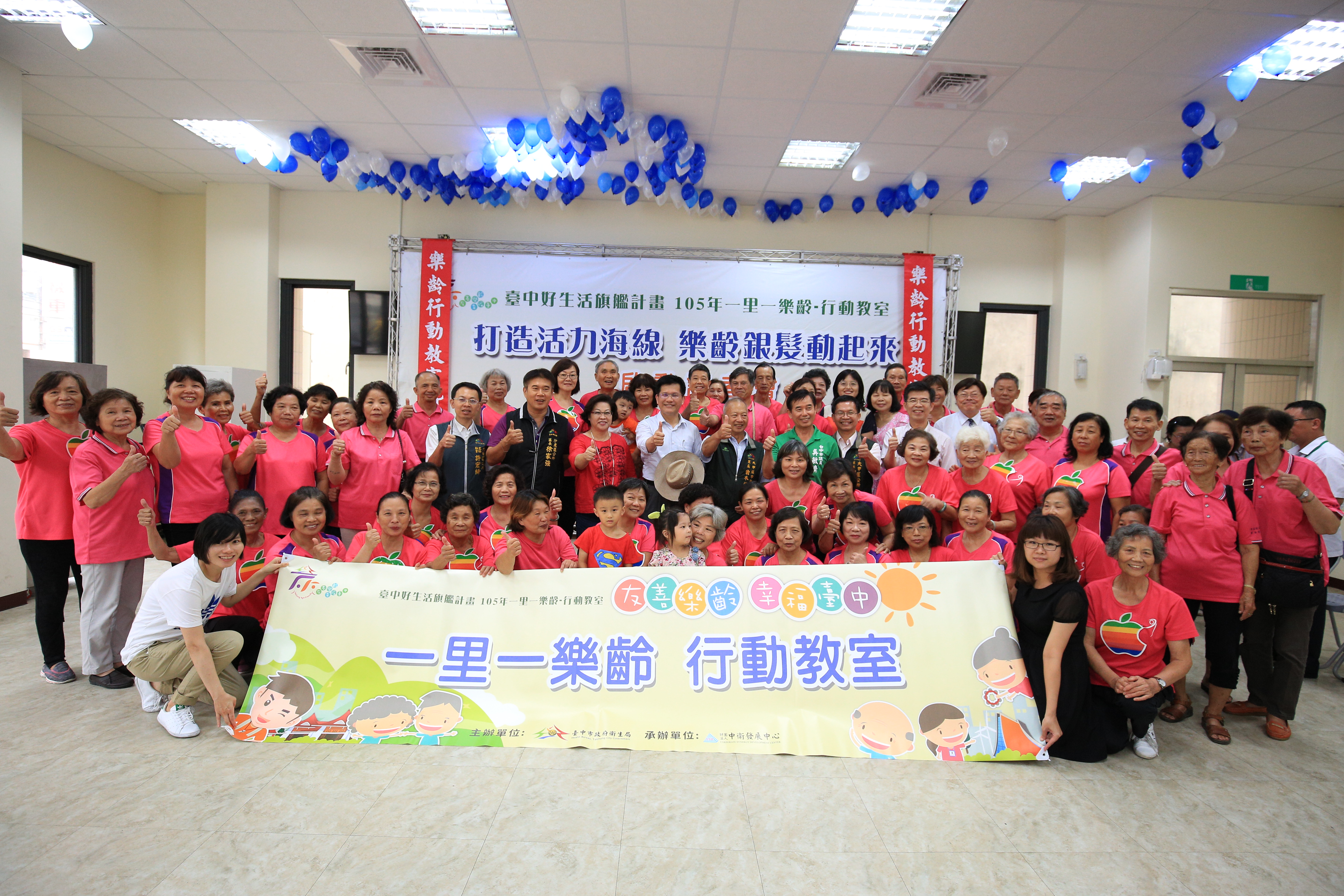 市府衛生局今(2)日與財團法人中衛發展中心在大甲區聯合活動中心舉辦「打造活力海線.樂齡銀髮動起來」啟動記者會,樂齡行動教室學員以「快樂的出航」一曲帶來活力健康操,並示範藺草編織展現活躍老化的一面;林市長在衛生局長徐永年的陪同下,帶領大甲區長劉來旺、沙鹿區長徐家強及大安區公所主秘許宏綺、清水區代表、梧棲區代表、西屯區代表及當地里長等人,一同宣告樂齡行動教室啟動,市議員吳敏濟及財團法人中衛發展中心總經理朱興華等人也共襄盛舉。