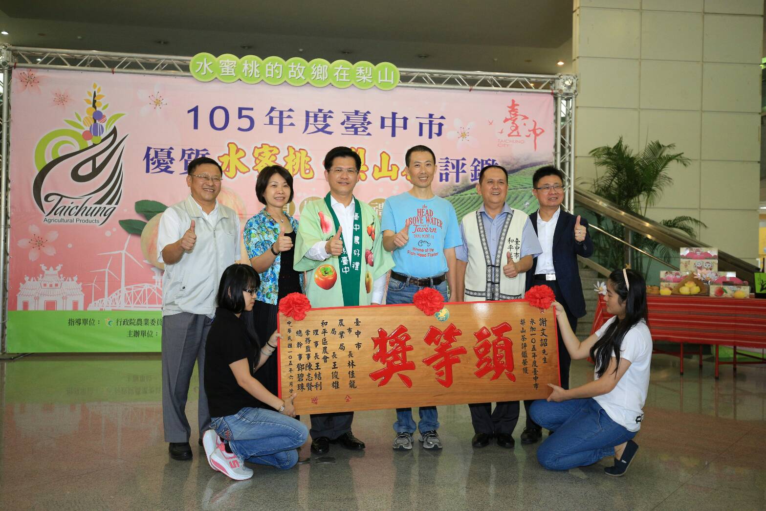 台中市政府農業局輔導和平區農會辦理「105年度台中市優質梨山茶(春茶)評鑑品茗活動」及「105年度台中市優質水蜜桃果品評鑑活動」,今年梨山茶(春茶)共有327組產銷班農民報名參加,比賽品種以梨山地區春季青心烏龍茶為主,經專業評審委員評比給分,最終由黃名村榮獲特等獎,成為今年度梨山茶王;水蜜桃評鑑則有60組產銷班農友參加,由廖昌本榮獲第一名,成為水蜜桃達人。