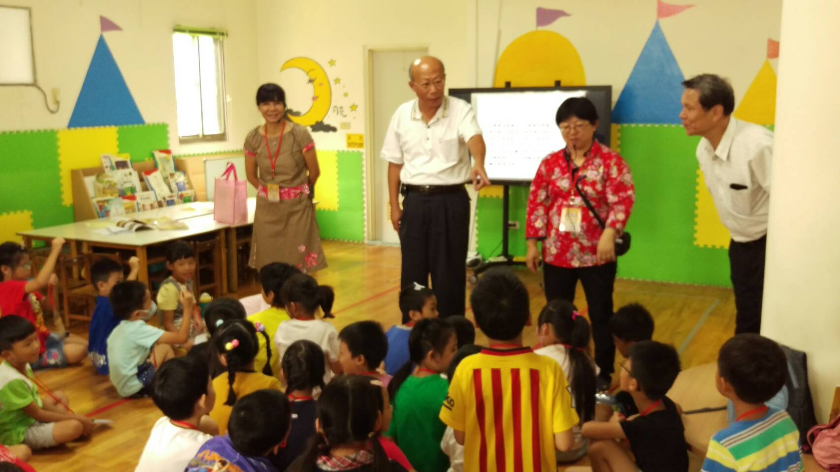客委會說,為了讓客家文化在各區發揚,落實客家文化向下札根的理念,今年客家小學堂特別加開幼兒園課程,活動當天市府客委會主委劉宏基到園所與小朋友們親切互動,學童們亦以充滿童音的簡易客語熱情地問候與回應。