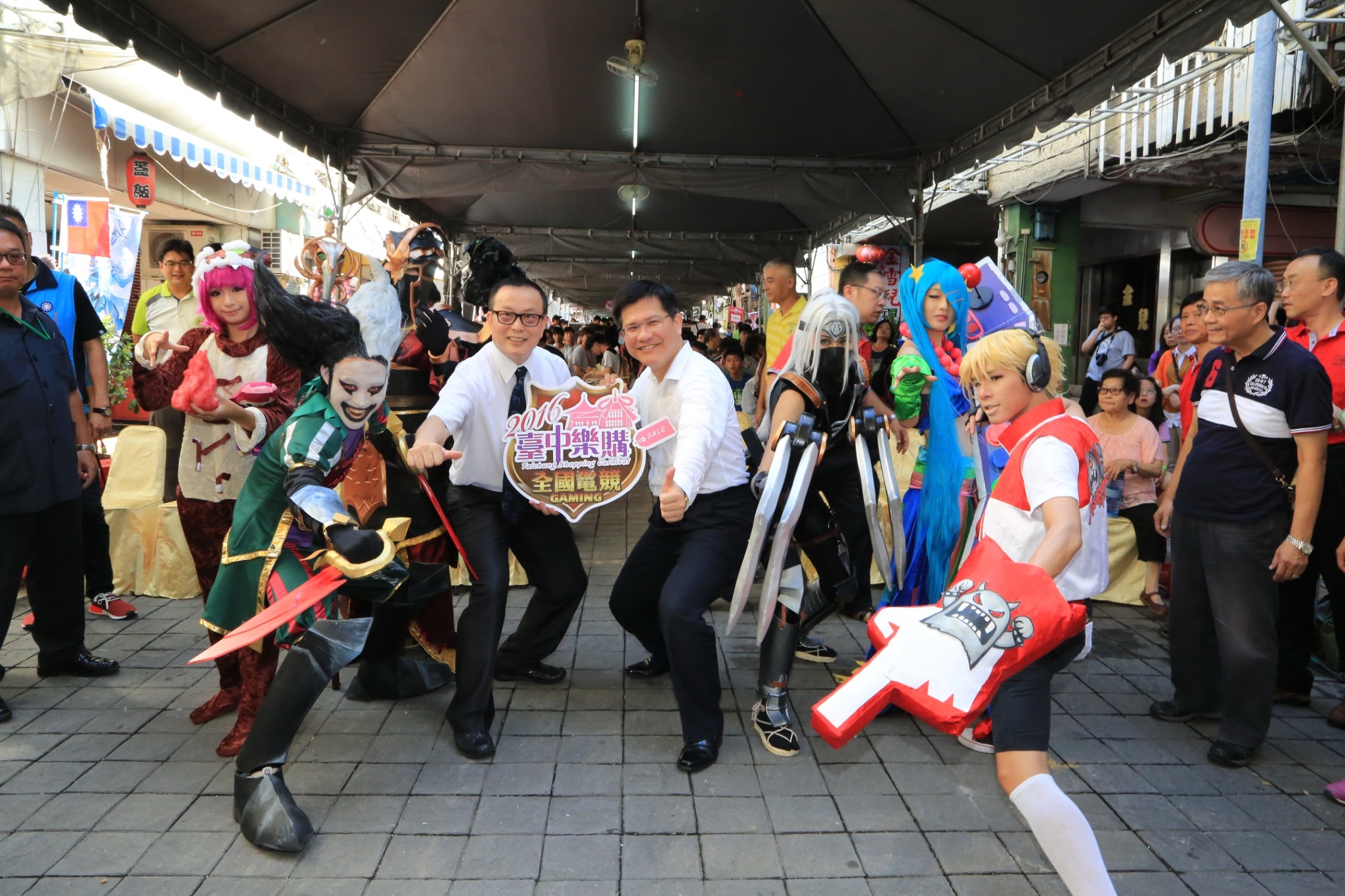 今日活動在中區自由光電商圈舉辦,吸引不少民眾參加,也有許多《英雄聯盟》愛好者前往觀戰,現場還有《英雄聯盟》粉絲cosplay成遊戲裡的角色,相當吸睛,包括林市長、立法委員黃國書、市府經發局長呂曜志等人均出席共襄盛舉。