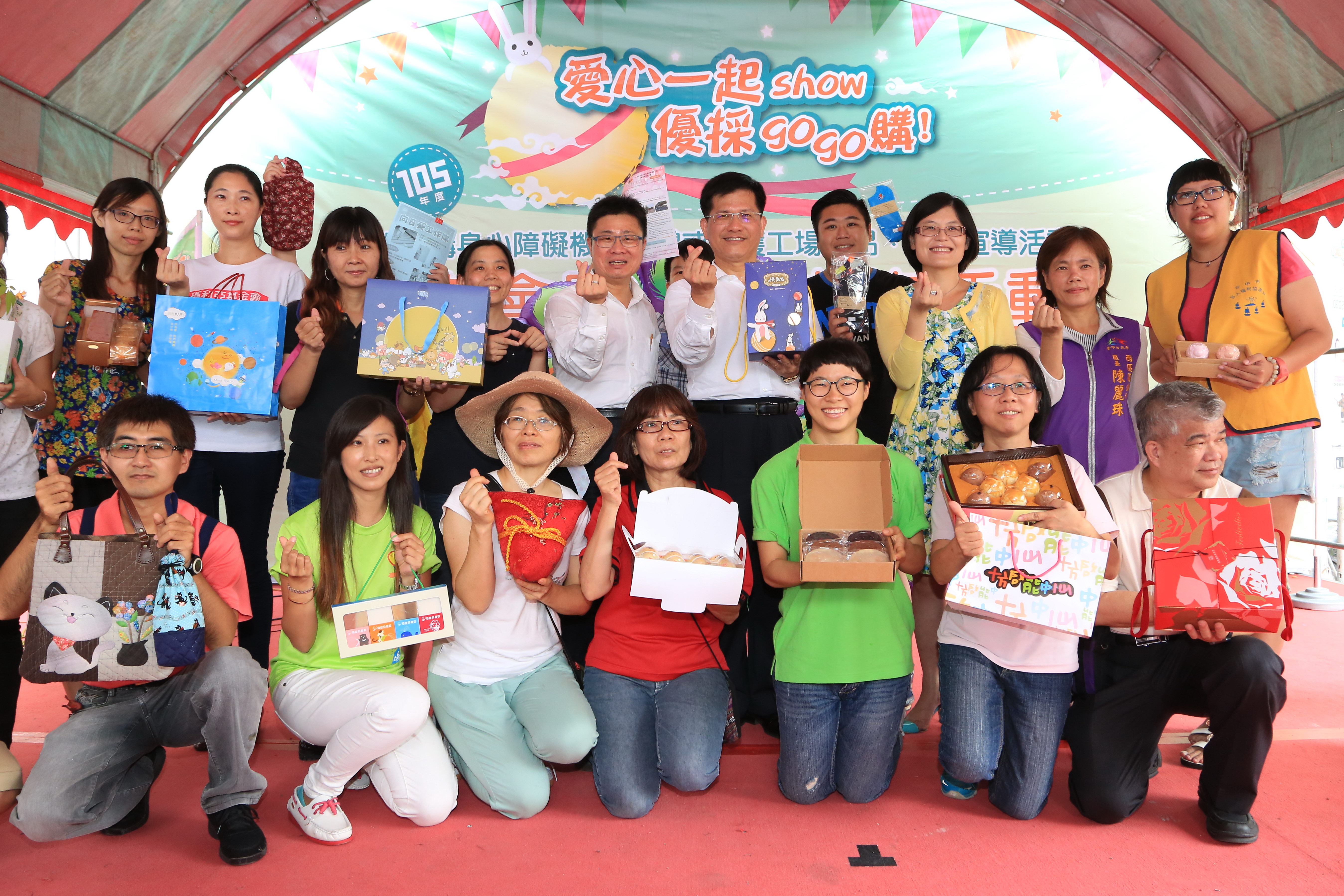 市府社會局今天在廣三SOGO前廣場舉辦秋節產品促銷記者會暨愛心市集活動,邀集台中市16家身心障礙團體及庇護工場擺攤,販賣中秋月餅禮盒及布包、香皂、鑰匙圈等各式精緻手工產品,包括林市長、市府社會局長呂建德、勞工局長黃荷婷等人均出席響應。