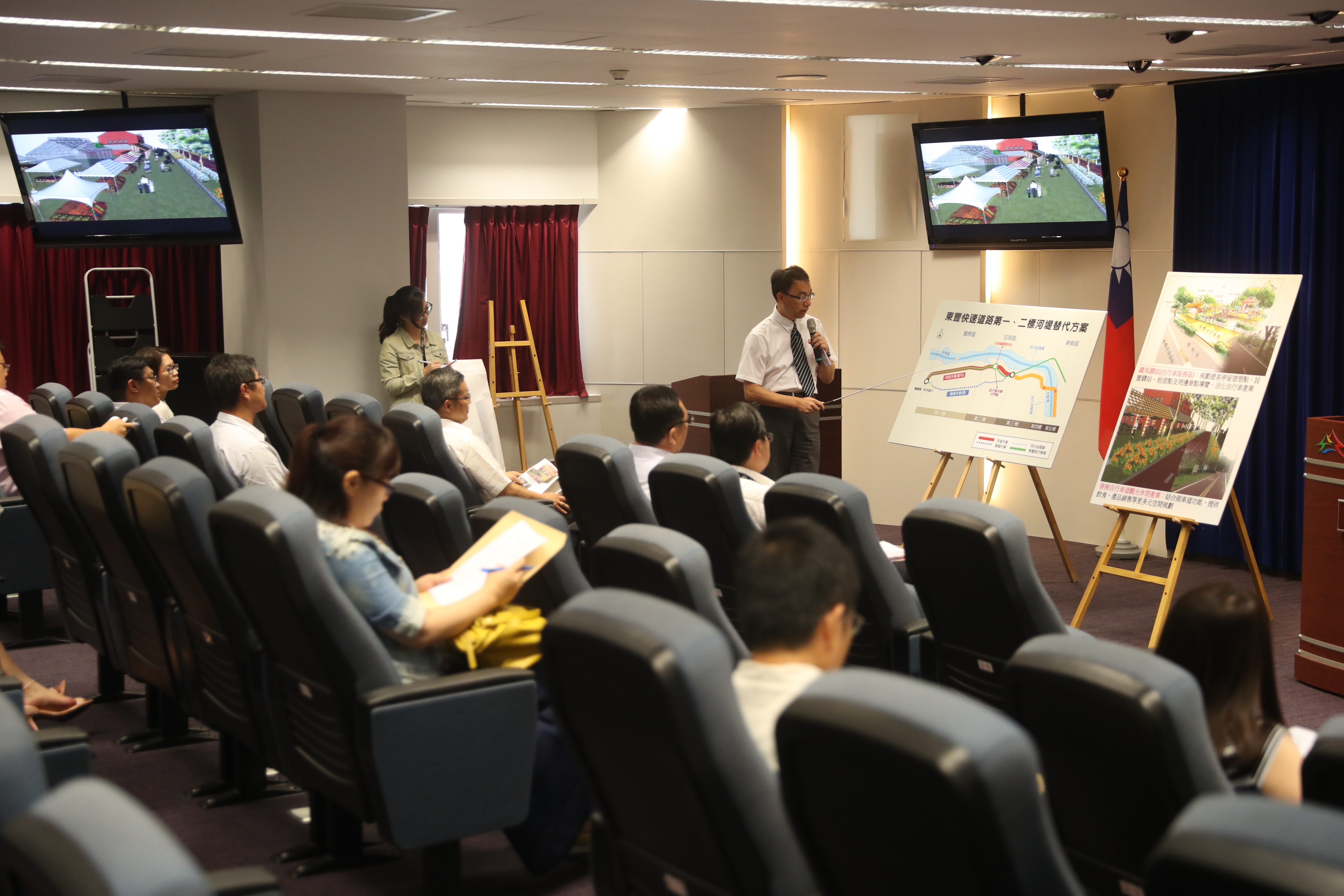 顏副局長指出,「隧道方案」所需工程經費大約40至50億元;「河堤方案」則屬外環形式的平面道路,工程經費減少,僅約24億元;若第二階段環評順利通過,工程時間更可望從48個月縮短至36個月,比「隧道方案」提早1年完工。