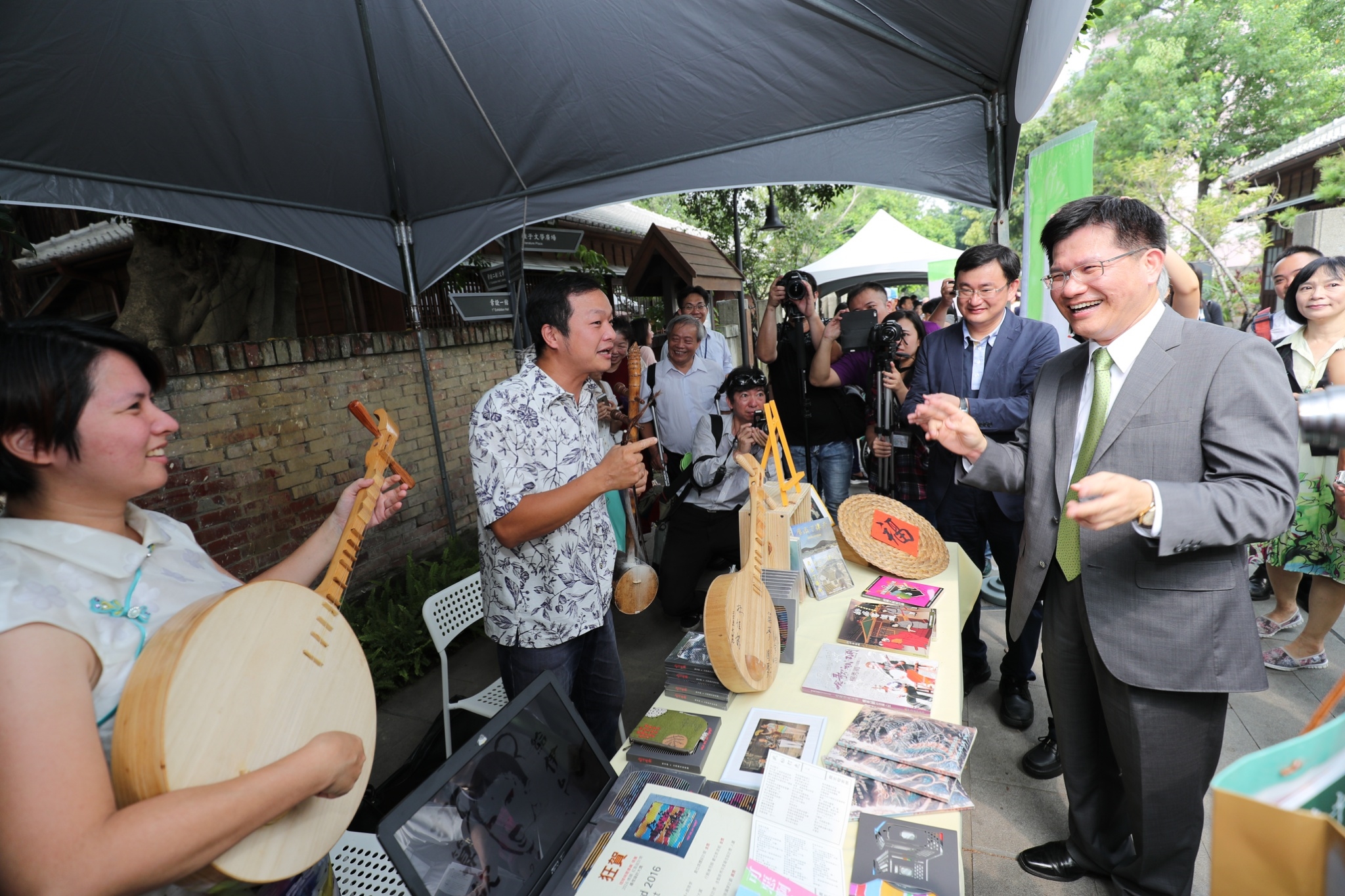 台中文學館今日正式全面開館,由林市長、文化局長王志誠、立委黃國書、市議員江肇國及多位台中作家共同揭幕,民謠大師陳明章則現場獻唱〈望春風〉及〈下午的一齣戲〉,祝賀台中文化新亮點的誕生。