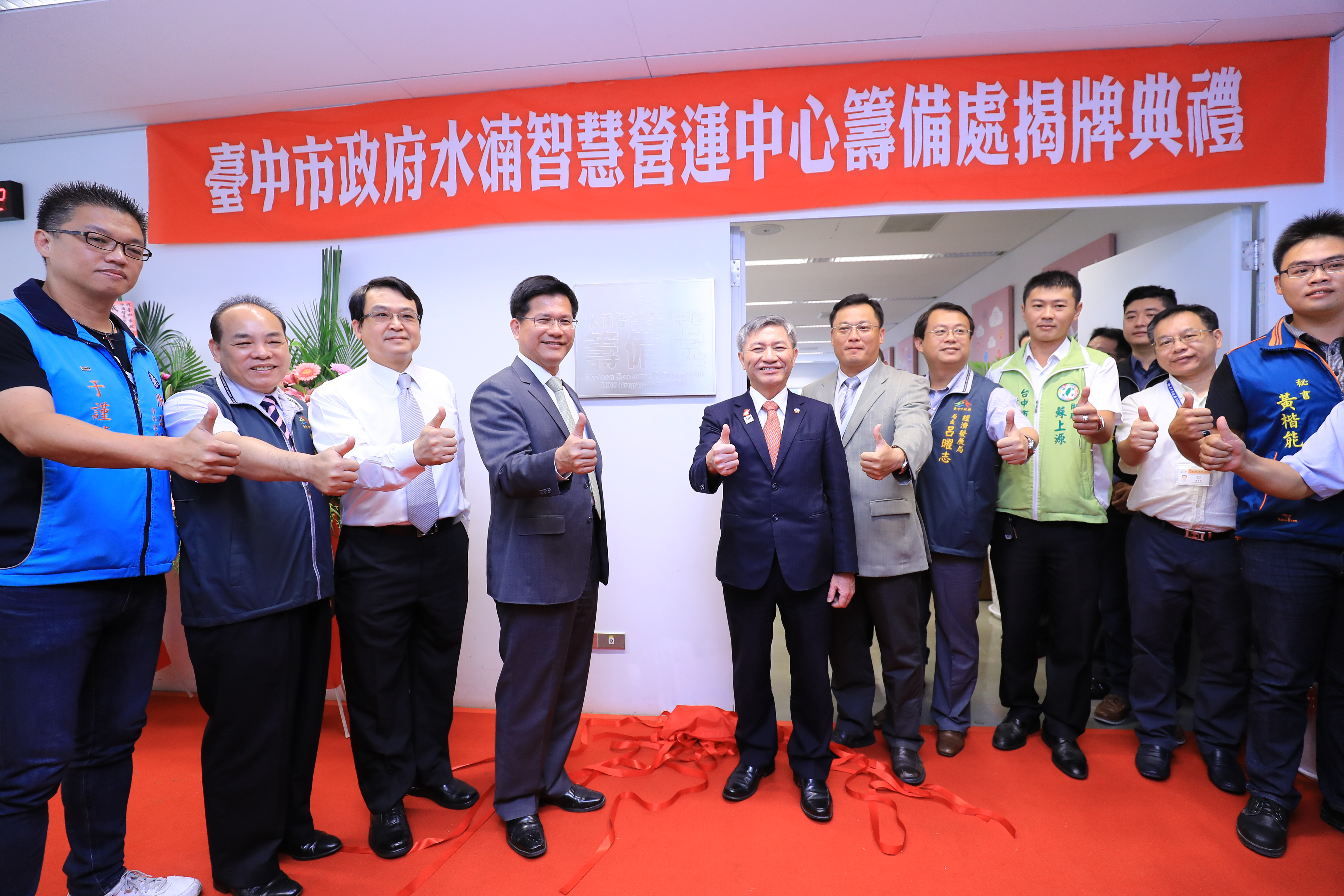 水湳智慧營運中心籌備處由台中市低碳城市推動辦公室及市府各局處共同籌組而成,今日並於台灣大道市政大樓舉辦水湳智慧營運中心籌備處揭牌儀式,由林市長、副市長張光瑤、副秘書長郭坤明、低碳城市推動辦公室執行長黃崇典、市府經發局長呂曜志、民政局長蔡世寅等人共同揭牌,宣告籌備處成立。