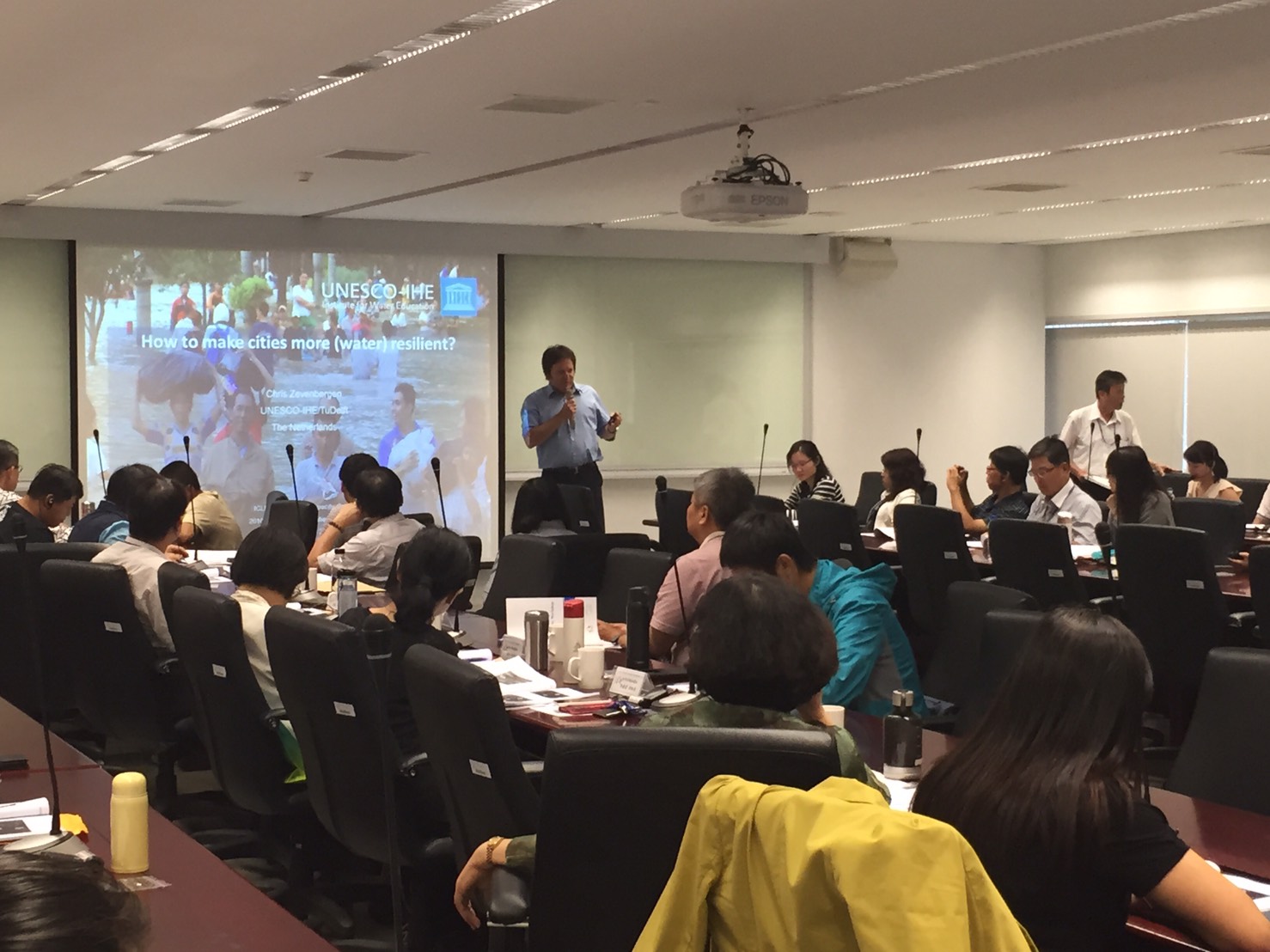 全球氣候變遷造成都市重大衝擊,突顯出城市環境的脆弱性,市府低碳辦公室與地方政府環境行動理事會東亞地區高雄環境永續發展能力訓練中心合作,共同主辦韌性水城市工作坊,以國內公職體系為目標學員,規劃永續韌性理論演示、國際城市案例分享、台灣在地城市願景、挑戰與實踐等課程。今(8)日更特別邀請聯合國教科文組織Chris Zevenbergen教授來台演講與交流討論,盼提供市府決策層級人員國際交流學習機會。