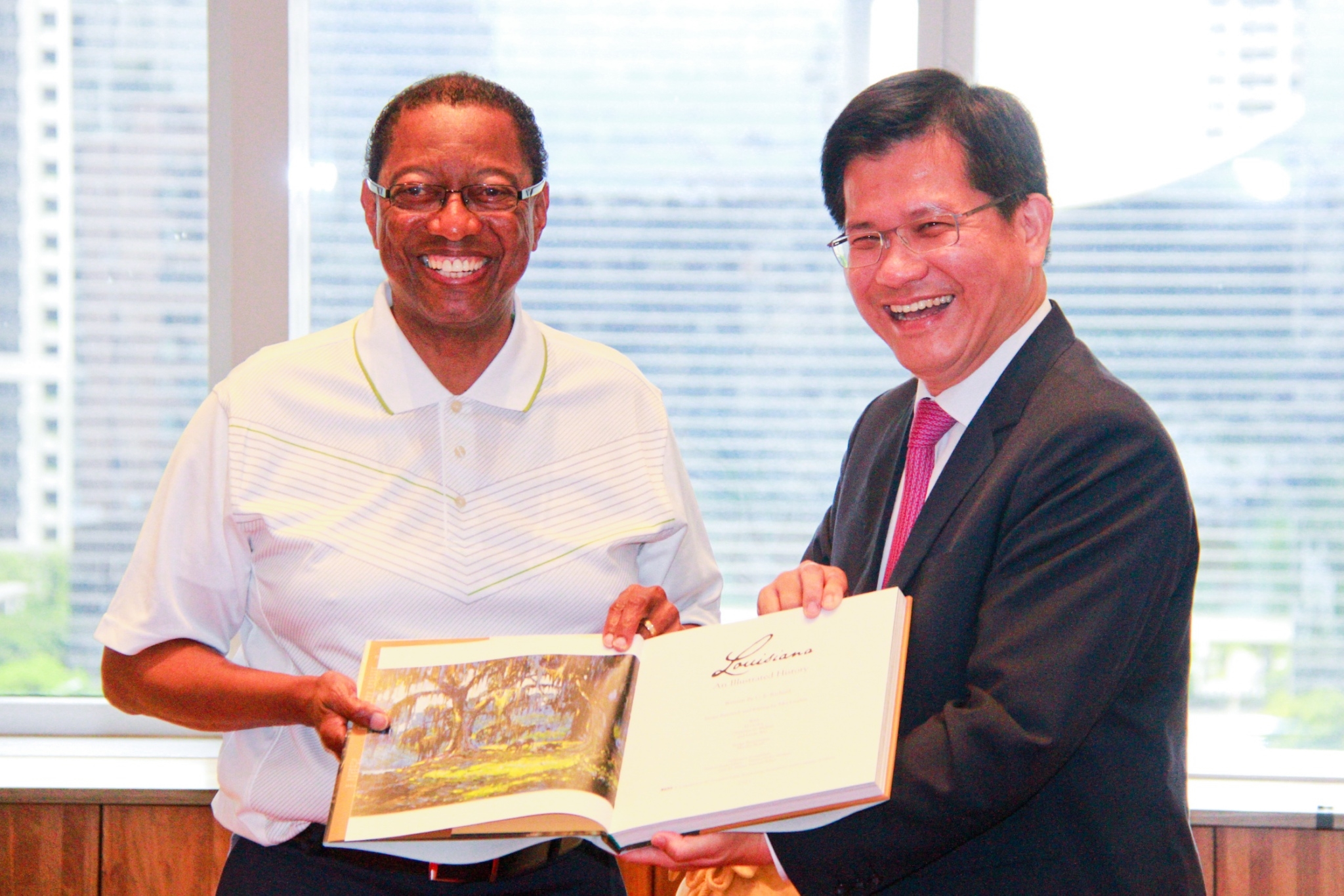 巴頓魯治市為美國路易斯安那州首府及文教、政治、經濟中心,且為州議會所在地,今日市長Melvin “Kip” Holden及美國在台協會高雄分處副處長楚杰生拜訪市府;林市長在副秘書長李賢義、水利局長周廷彰及秘書處長李如芳等人的陪同下,雙方進行會談交流,相談甚歡。