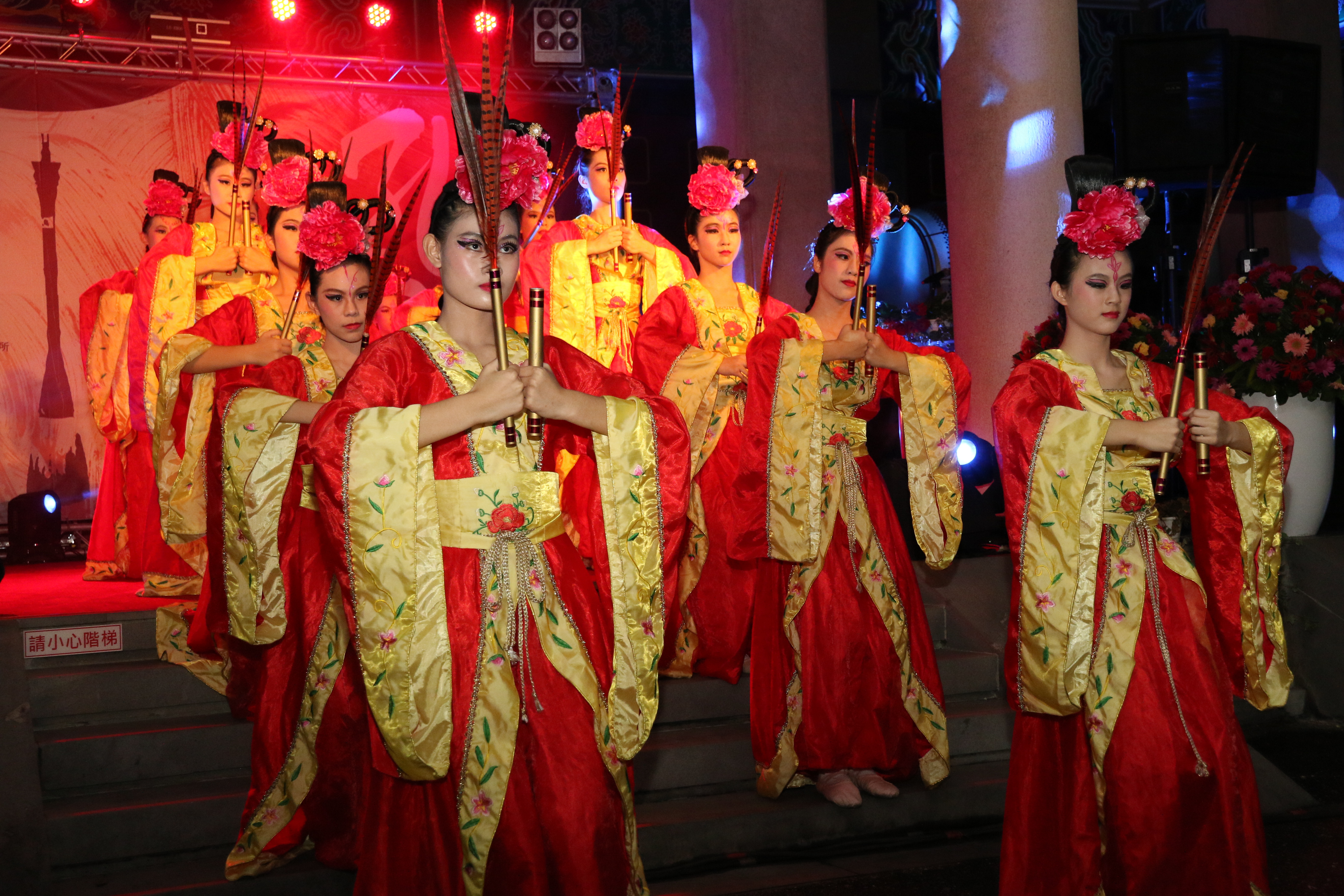 今日晚間的活動由曉明女中舞蹈社的改良版八佾舞開場,學生們身著禮服手拿翟龠,演繹融合古典與現代的舞蹈,並有川劇變臉、燈光秀等表演,以感謝辛苦的志工們,贏得志工掌聲連連。
