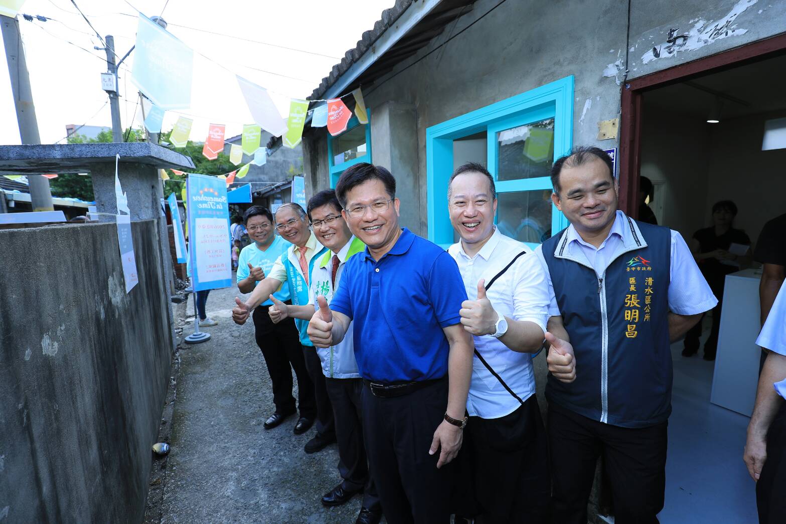林市長並表示,市府已經經爭取故宮數位典藏館來台中,並規劃海線雙港輕軌捷運,不管從市區、台中港或清泉崗出發,清水都是必經之地;未來清水眷村文化園區除了不間斷地辦活動,還要把台中工藝設計作品帶到園區展示,另外邀請駐村藝術家來創作,存舊立新,打造清水慢活文化藝術小鎮。