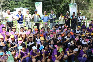 為讓活動更具教育意義,主辦單位更邀請新社、大南、崑山三所國小學童共同參與放流活動,並在食水嵙溪岸邊懸吊的祈福卡上,寫下對白魚的祝福,盼望白魚回到棲息地後,順利繁衍、生生不息。