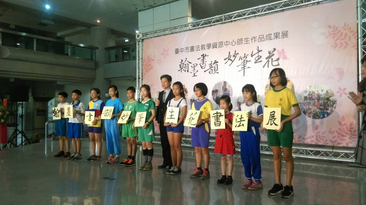為推動書法藝術扎根台中,台中市政府教育局整合書法教學資源中心11所學校,舉辦「翰墨書韻 妙筆生花」師生書法展,今(22)日在陽明市政大樓一樓開幕,市府教育局長彭富源歡迎大家一起來欣賞書法文字之美。