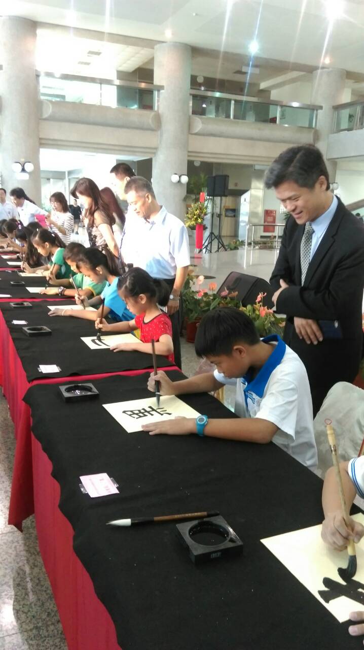 現場有后里區內埔國小薩克斯風隊、大肚區大肚國小舞蹈團等精彩表演,參展學生並即興揮毫,展現學習成果,氣氛熱鬧。