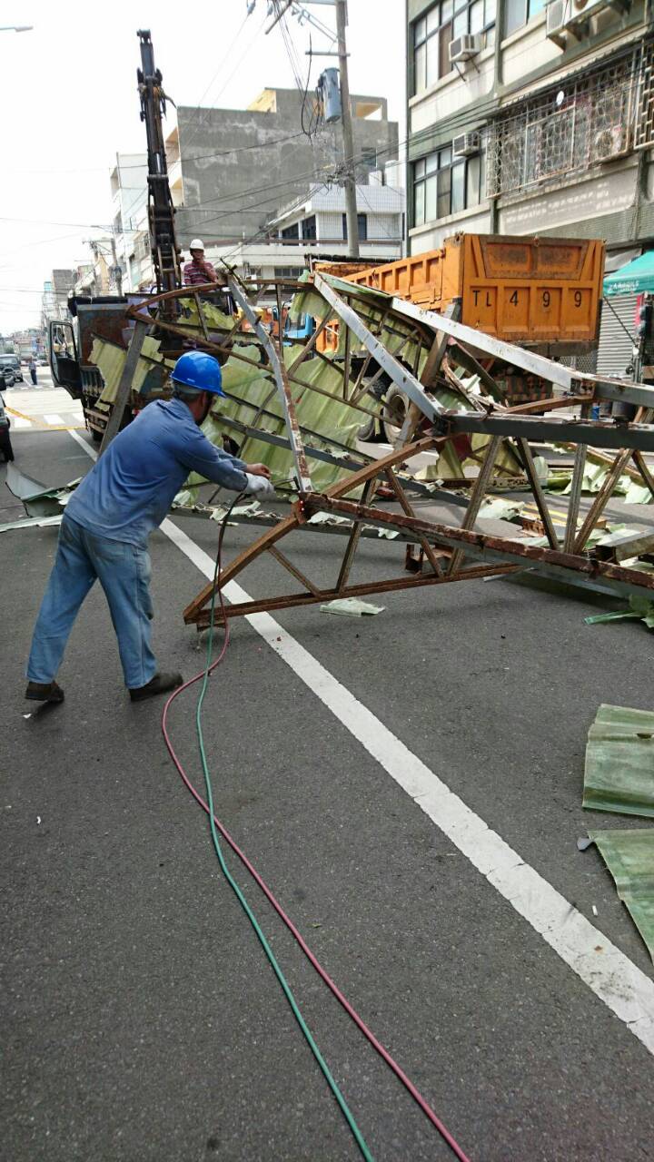 市區部分,已持續完成西屯何厝街、福強街、南屯干城街116巷6弄等鐵架鐵皮倒塌案件,北屯區北屯路、北區三民路、西區精誠路、東區精武路、南屯永春路一段、西屯青海路一段、河南路二段、台灣大道二段等大型廣告物也已清除,計排除11條大小道路障礙,並已清查處理419處危險招牌、218處倒塌圍籬,加上其他受災案件,共計已完成893件。