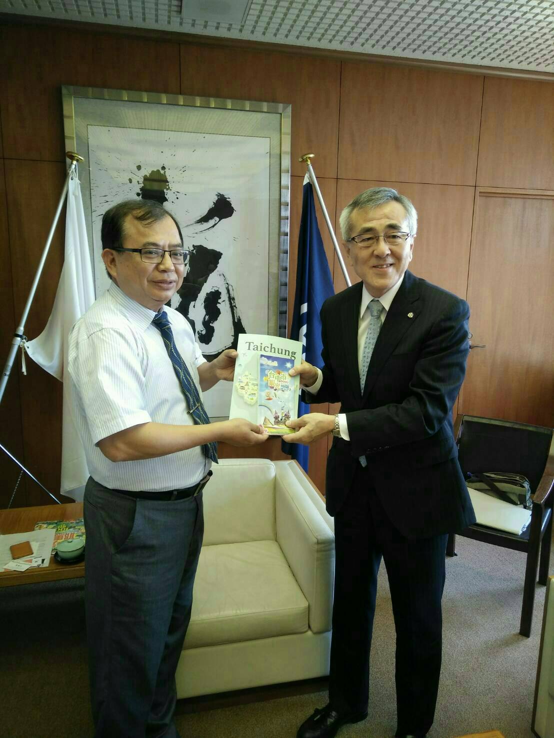 觀光旅遊局表示,此行由該局會同競達單車協會、財團法人自行車暨健康科技工業研究發展中心等單位組成8人交流團,先後拜會大分縣企畫振興部觀光地域局長岡本天津男與中津市長奧塚正典,由觀旅局科長曹忠猷代表局長陳盛山提案與大分縣合作推動自行車交流,並致贈「花現台中」彩繪機,歡迎大分縣的朋友搭程直航班機,體驗台中的美景美食。