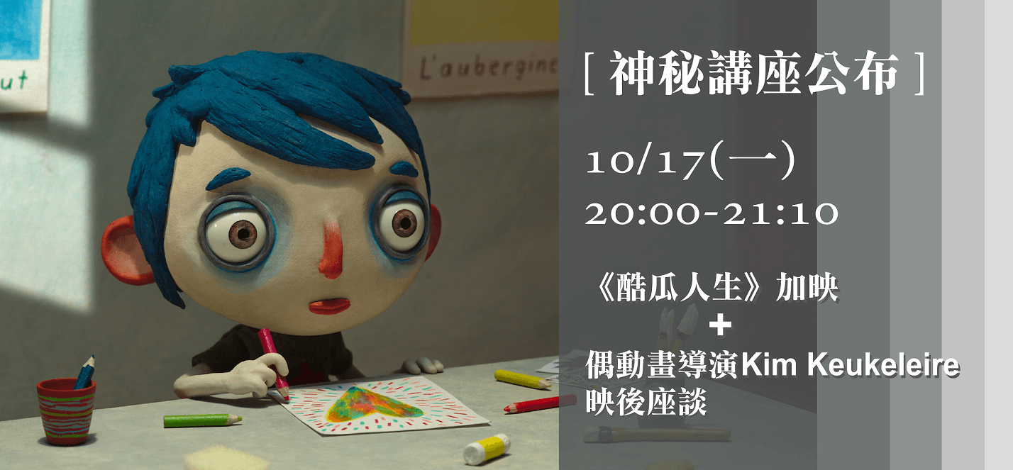 影展策展人陳怡菁表示,同樣在9月15日預售票啟售當天就搶購一空的開幕大片《酷瓜人生》(My Life as a Courgette),也將於10月17日同步加映,當天神秘講座將邀請《酷瓜人生》的偶動畫導演金・格可列勒(Kim Keukeleire)進行影人對談,由製作偶動畫角色的大師,傳授如何將偶「注入生命」的技巧。
