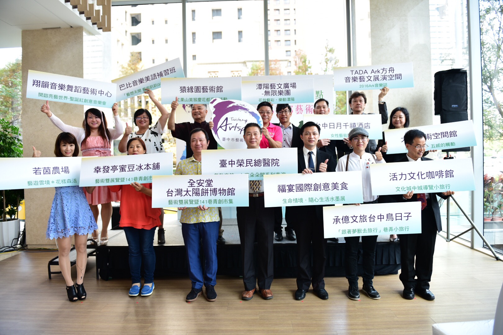 參與的14家藝術亮點包括:若茵農場、猿緣園藝術館、大象藝術空間館、台中日月千禧酒店、TADA Ark方舟音樂藝文展演空間、潭陽藝文廣場、翔韻音樂舞蹈藝術中心、活力文化咖啡館、承億文旅台中鳥日子、全安堂台灣太陽餅博物館、幸發亭蜜豆冰本舖、福宴國際創意美食、巴比音樂美語短期補習班以及台中榮民總醫院。