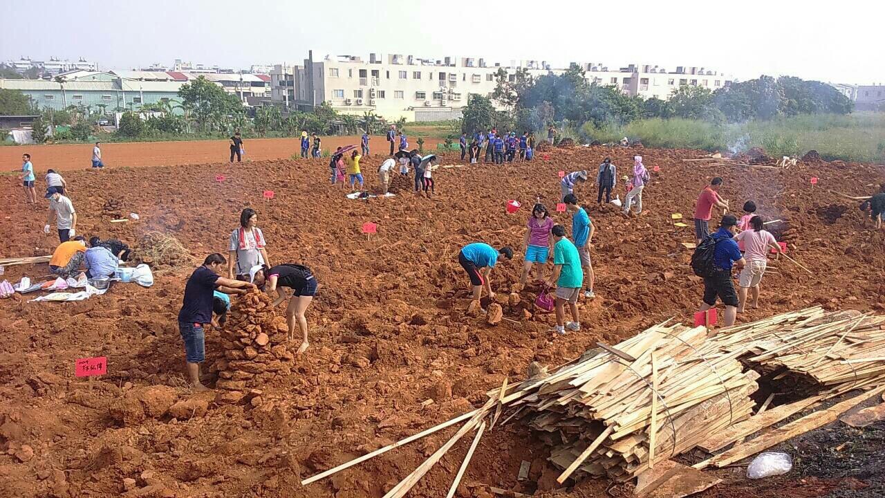 為響應今日的活動主題「千人焢窯大會」,活動現場也搭造100座土窯,並藉由起窯儀式揭開活動序幕,讓民眾同時享受採收地瓜與控窯的樂趣,也安排社區產業市集推廣地瓜、狗尾草等地方農特產品,結合各表演團體及社區成長教室才藝表演等活動,熱鬧非凡。