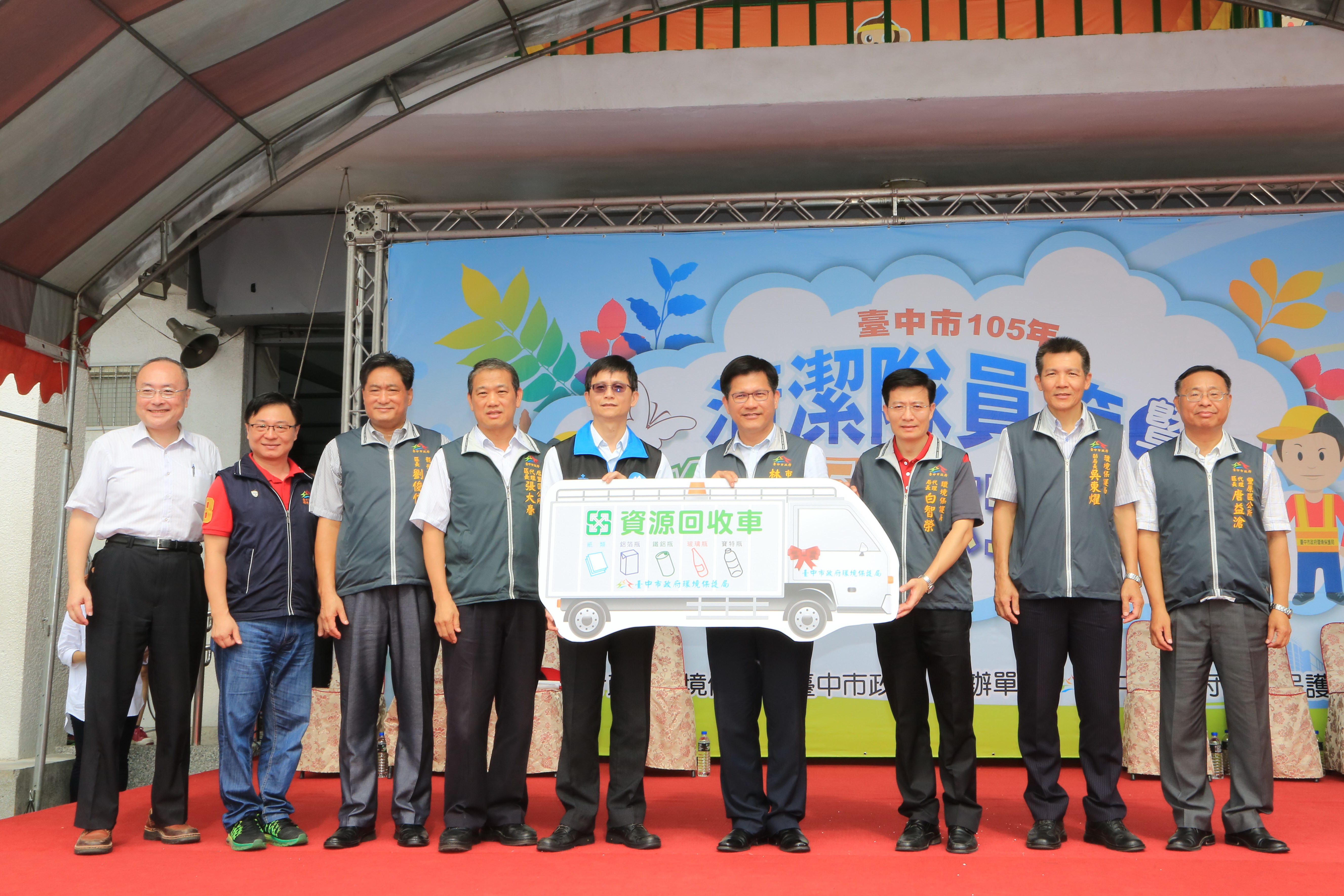 今日慶祝活動於豐原區體育場熱鬧登場,林市長在環保局白局長陪同下出席,也主持10部新式資源回收車啟用典禮,並表揚41位服務績優隊員及獲得專業技能認證的清潔隊,以及參加總統盃壘球賽獲得季軍獎項的環保局隊員。包括環保署副署長詹順貴、市府環保局副局長吳東耀、市議員羅永珍、市議員陳成添服務處代表等人也到場共襄盛舉。