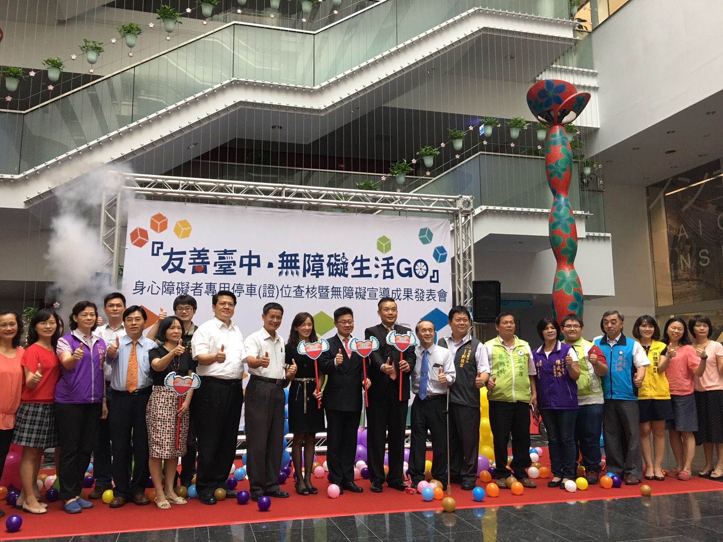 市府社會局今(20)日在台灣大道市政大樓辦理「友善台中.無障礙生活GO~」記者會暨成果發表會,分享過程中的點點滴滴,社會局長呂建德,教育局,警察局、交通局等機關代表一起共襄盛舉。