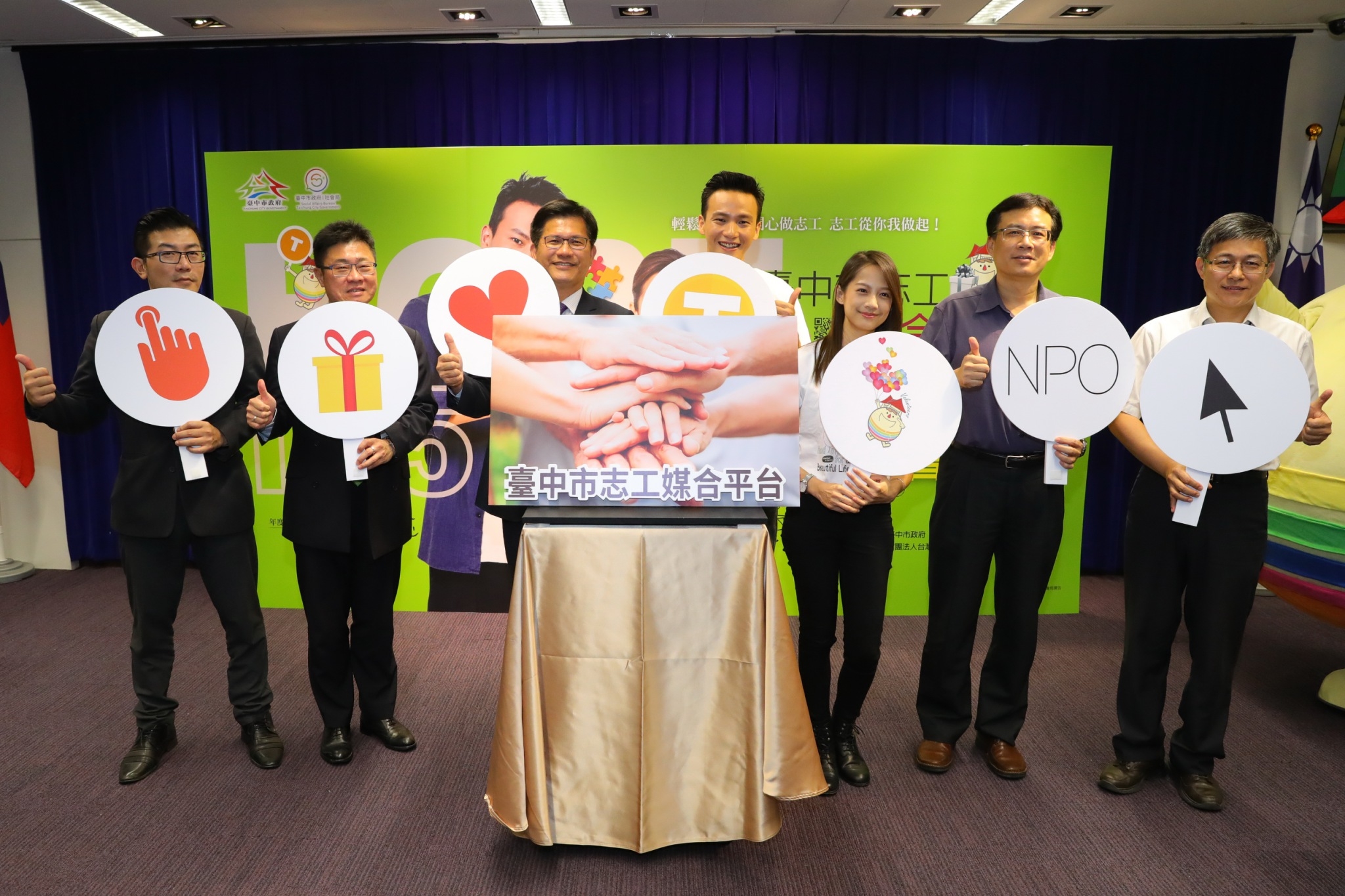 台中市政府全新改版志工媒合平台,除原有的媒合功能外,更新增許多功能包括NPO組織可藉由平台宣傳活動資訊,志工亦能立即得知合適機會,平台並增設志工服務時數累積功能,及提供提領時數兌換獎勵等機制。市長林佳龍表示,透過志工媒合平台,能讓想當志工或需要志工幫忙的人擁有資訊管道,讓愛生出更多的愛形成善的循環,打造台中市成為志工首都。