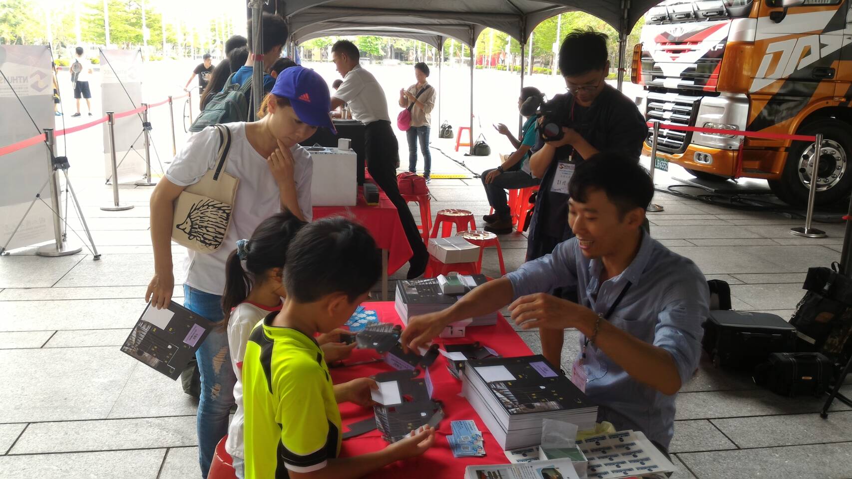 今日活動由國立清華大學普通物理實驗室科普活動體驗團隊指導,結合國家中山科學研究院AR/VR射擊體驗、群光電子360/4K全景VR攝影機、亞拓電器空拍直升機、合盈光電科技影像辨識的應用等產品展示;台中市副市長張光瑤、台灣區光學工業同業公會理事長林泰朗及經濟部加工出口區管理處台中分處秘書楊淑娟等人均到場體驗。