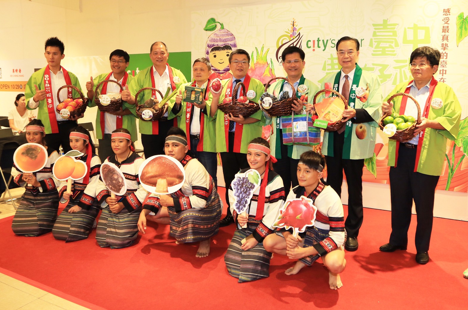 今(26)日下午,在台北SOGO百貨city'super(復興店)舉辦行銷記者會,台中市長林佳龍、立法院副院長蔡其昌、參議陳思妃、市府農業局副局長蔡勇勝、city'super營運長劉朝雄、大甲區農會總幹事黃瑞祥、沙鹿區果菜運銷合作社理事主席童育賢、中都農業生產合作社理事主席馬聿安等人都到場支持。