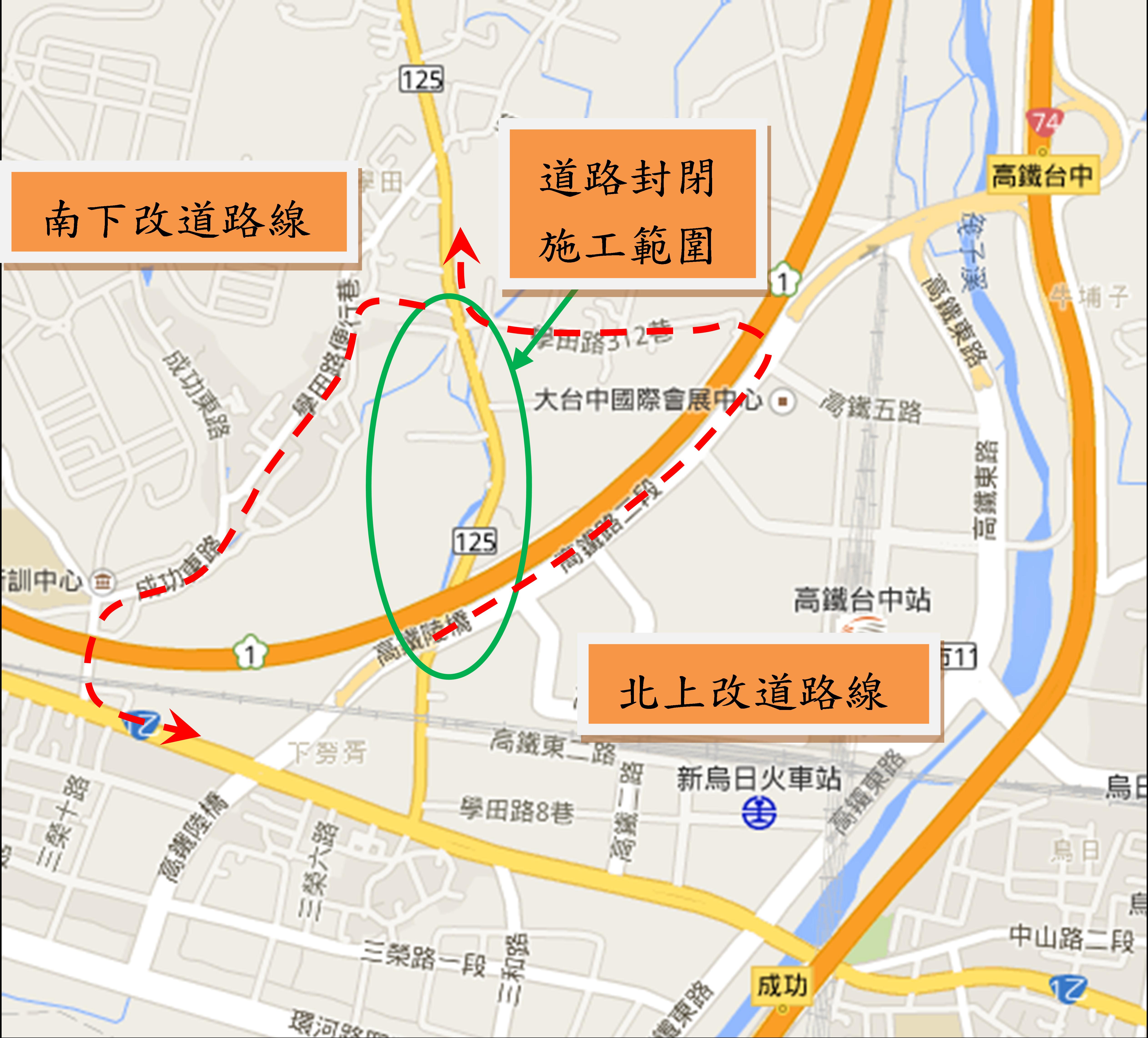位於烏日區學田路近312巷口的學田二號橋將進行改建工程,施作預力梁吊裝及安裝作業;台中市政府建設局表示,考量用路人行車安全,將進行道路封閉施工,於11月6、7兩日晚間10時至隔天上午6時吊裝期間,封閉學田路自高鐵路二段至學田路便行巷路段,請用路人遵循交通指示,改道行駛。建設局指出,施工期間往南屯方向車輛請改由高鐵路、台74線通行;往烏日方向車輛請改行學田路便行巷,造成不便,敬請見諒。(11/2*7)*建設局 聯絡人:台中市政府建設局道路養護科廖先生 聯絡電話:04-22289111分機33416