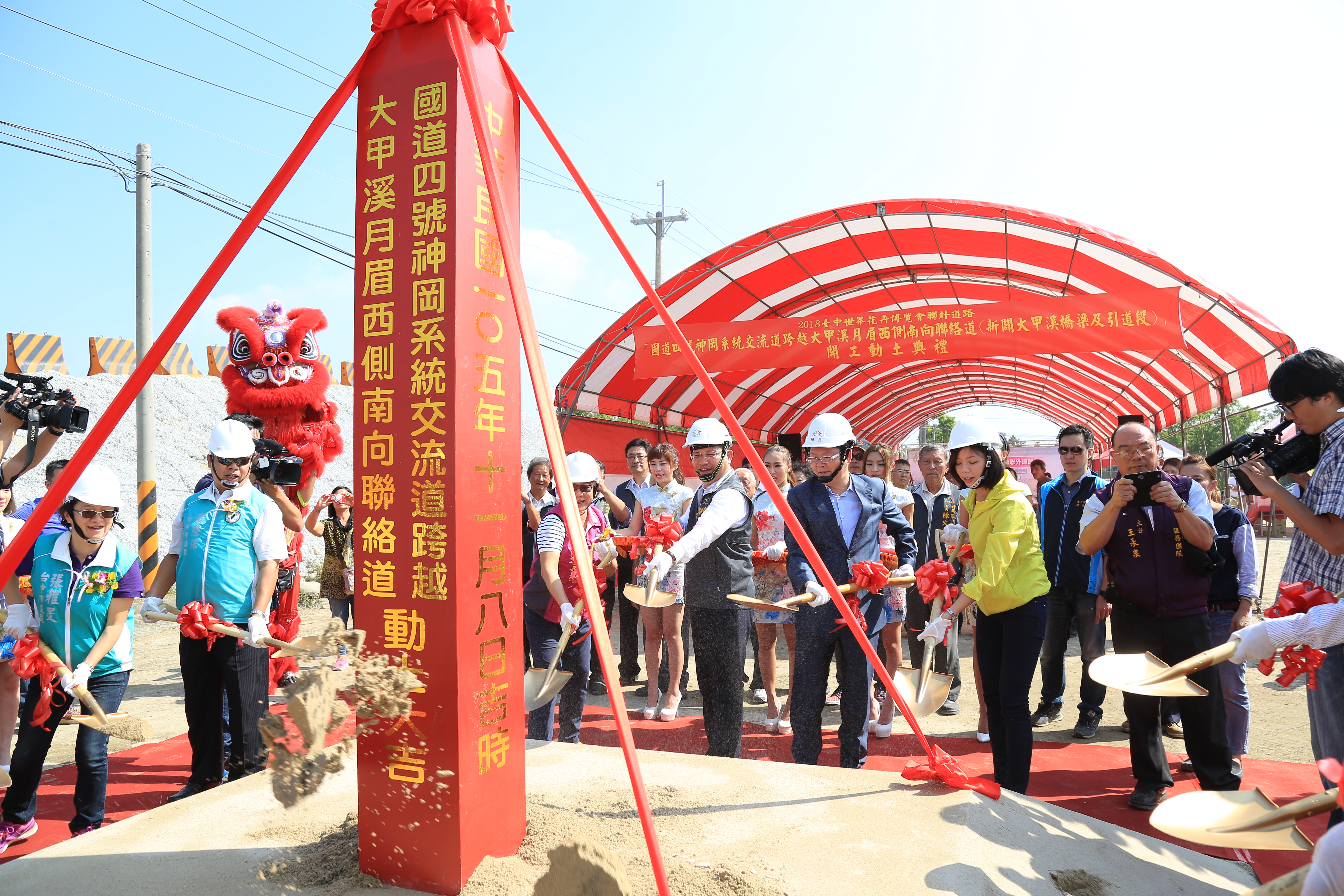 市長林佳龍今日在市府建設局長黃玉霖的陪同下,前往神岡區主持花博聯外道路月眉西側南向橋梁工程動土典禮,神岡區長王基成、后里區代理區長張大春、立法委員洪慈庸、市議員張雅旻、蕭隆澤、張立傑、羅永珍等人也到場見證。