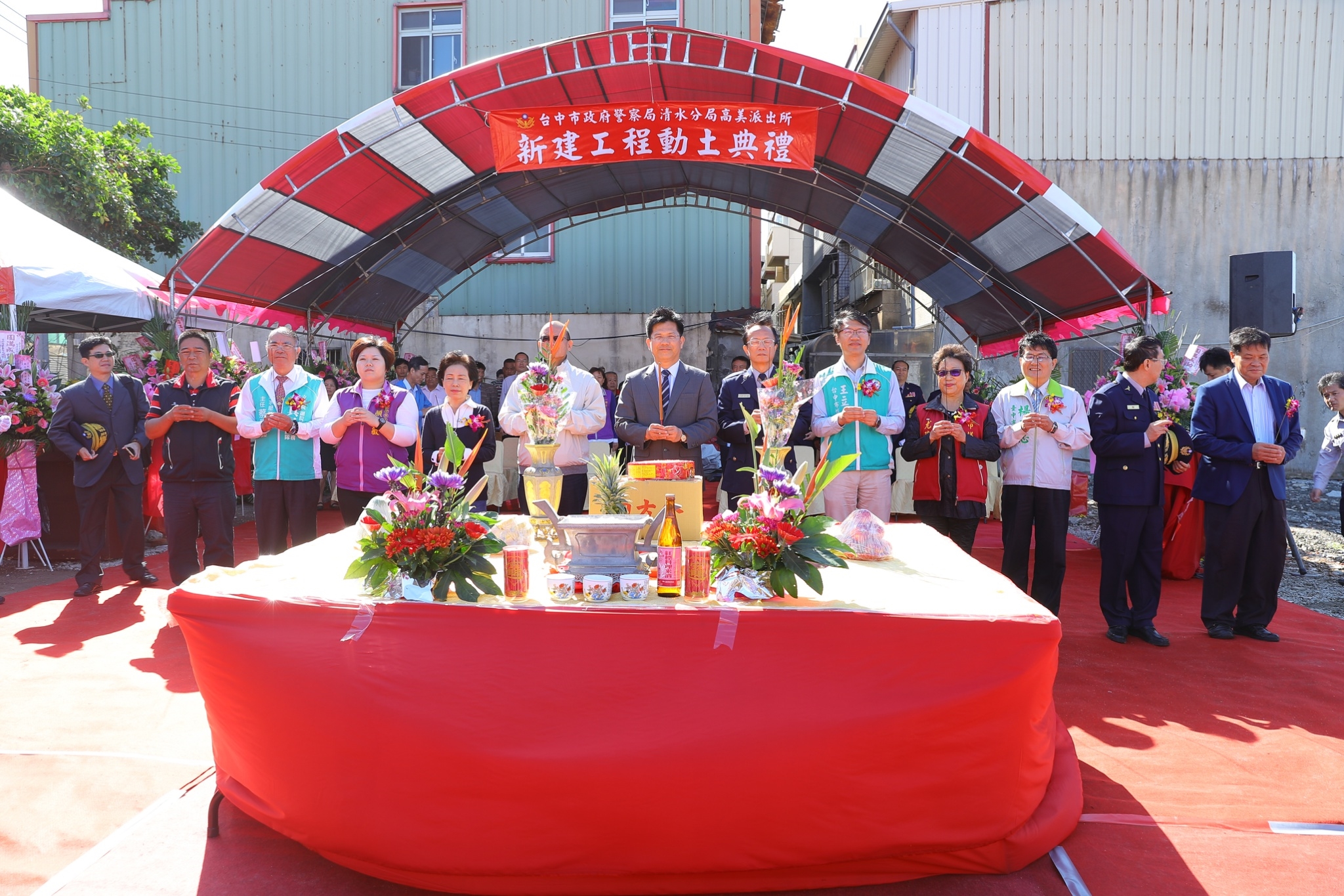 包括林市長、副議長張清照、市議員尤碧鈴、顏莉敏、楊典忠、王立任、前議員蘇麗華、市府警察局長陳嘉昌、清水分局分局長郭順德、清水區長張明昌、梧棲區長戴燕如、沙鹿區長徐家強等人都出席今天的動土典禮,共同祝禱期盼工程順利完成,為清水高美地區治安、交通及服務注入新活力。