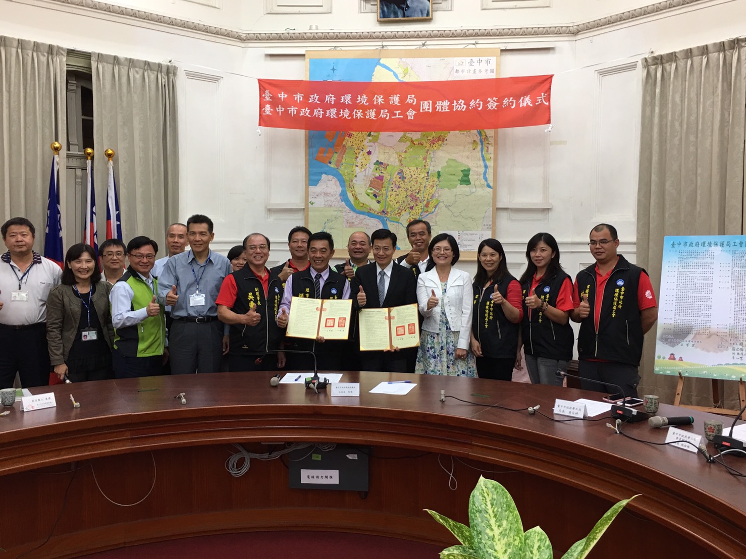 勞工局長黃荷婷也表示,台中市環保局已在104年度領先中部地區公部門,首創與工會團體完成團體協約簽訂,提升勞動福利與工會保護政策,以及輔導工會永續發展。今年進一步將「災防獎勵假」納入團體協約簽訂,展現市府重視基層勞工、支持工會團體永續穩定發展的決心,創造勞資雙贏勞動環境