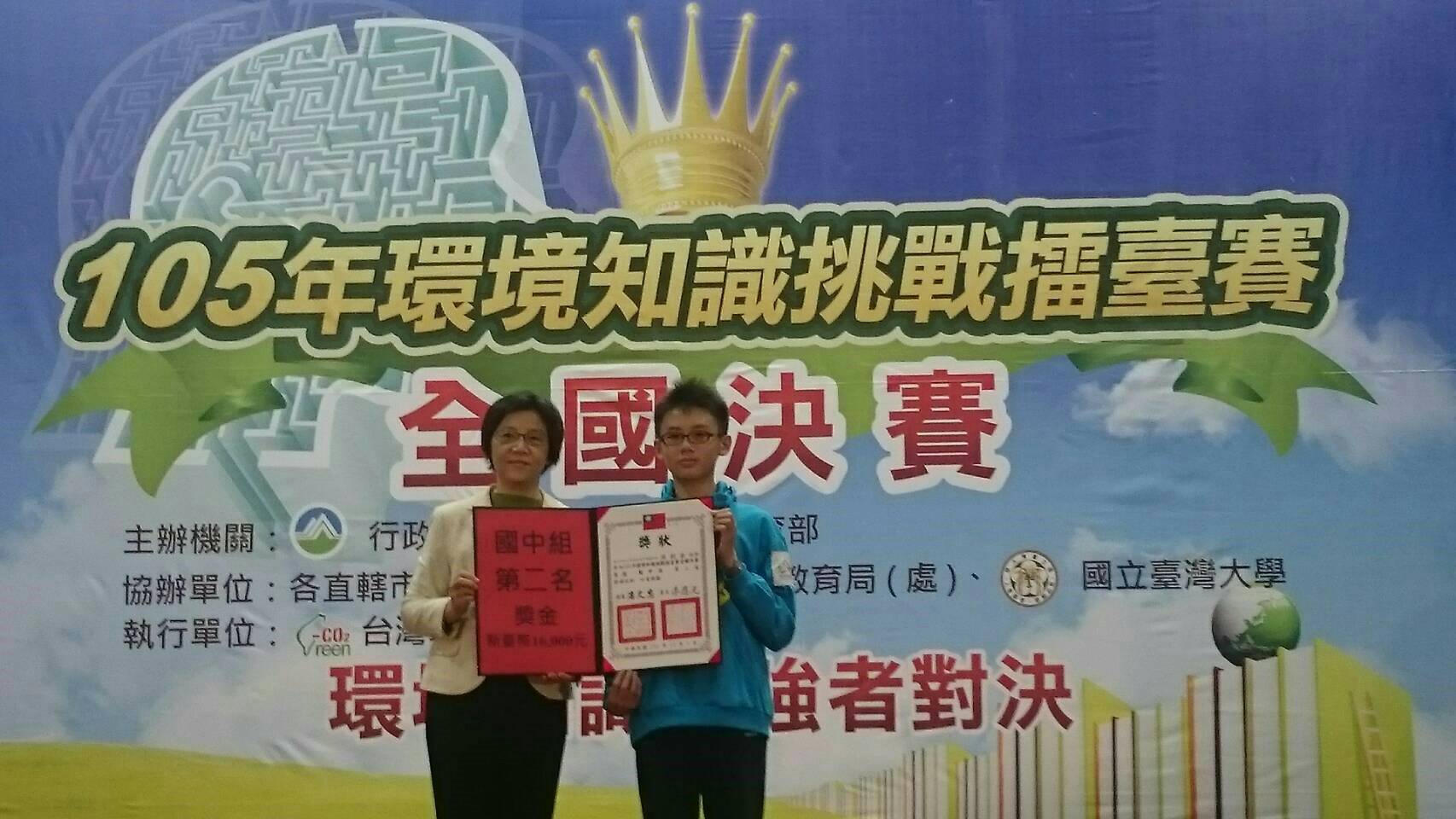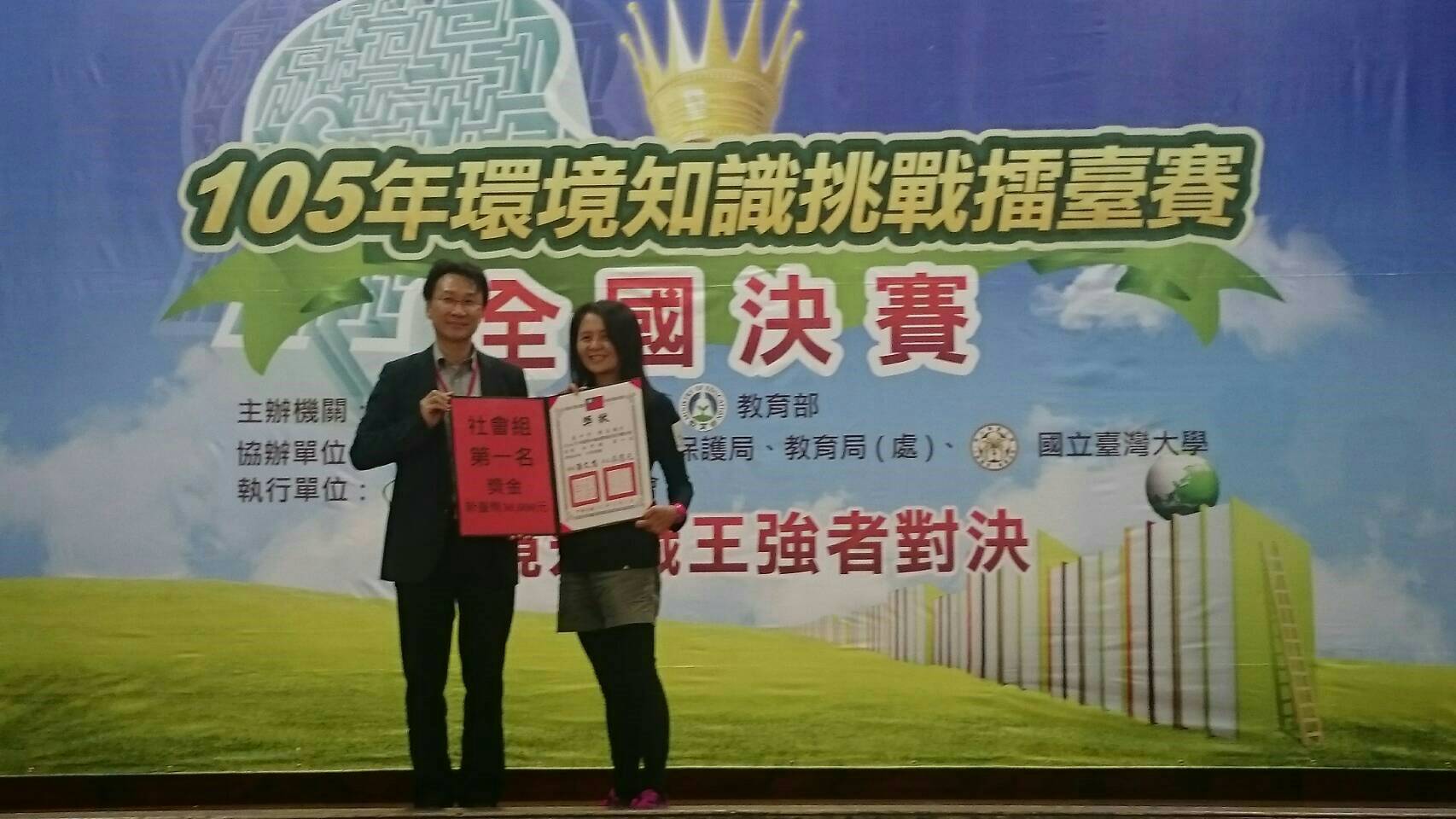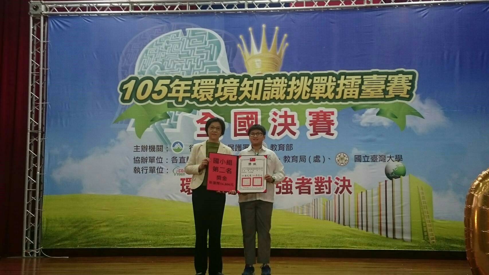 行政院環保署與教育部共同主辦的「105年環境知識挑戰擂臺賽全國決賽」今(3)日於台灣大學登場,分為國小、國中、高中(職)及社會組,全國共計440選手參賽。台中市囊括社會組冠軍、國中及國小組亞軍,成績斐然。