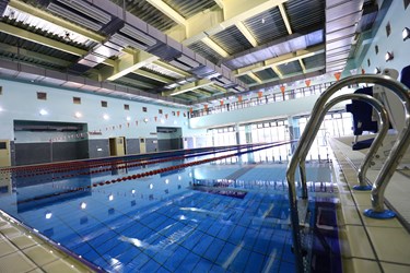 林市長今日視察羽球場及泳池等設備,發現羽球場上方燈光直射有可能影響選手視線,立即要求相關單位依專業意見改善;泳池部分則特別操作方便身心障礙者進出泳池的無障礙座椅,確認無障礙設施完善。