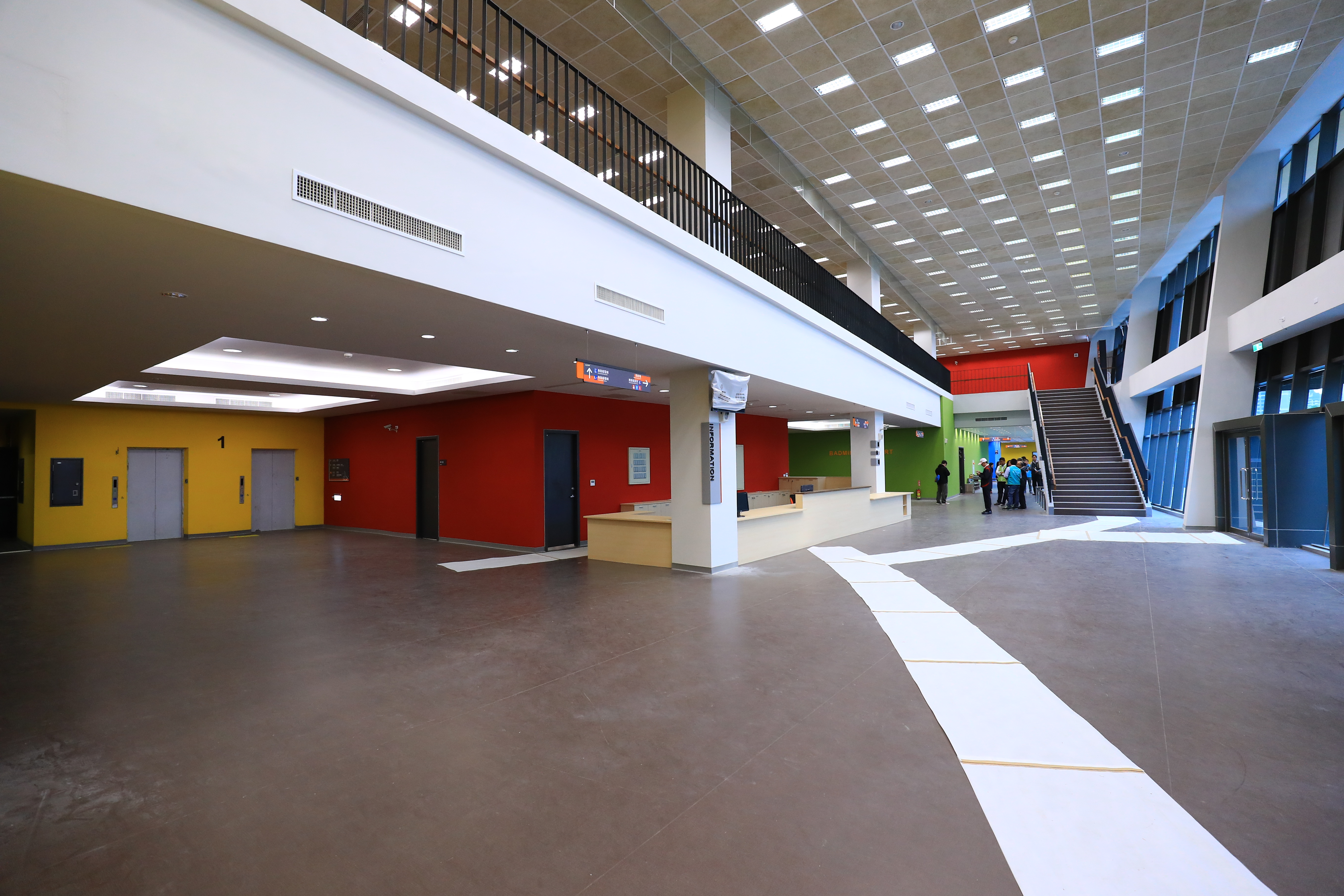 朝馬國民運動中心耗資4億元興建,擁有亮橘色外觀,103年8月動工、今(105)年4月竣工,12月30日將正式啟用。其羽球場挑高12.8公尺,側面特別開低窗,避免陽光影響選手視線;周圍牆面則特別刷上深綠色,與白色的羽球色彩區隔,有利選手正確判斷球的位置,規劃成為東亞奧林匹克委員會主辦的2019東亞青年運動會(簡稱東亞青奧)羽球比賽場地。