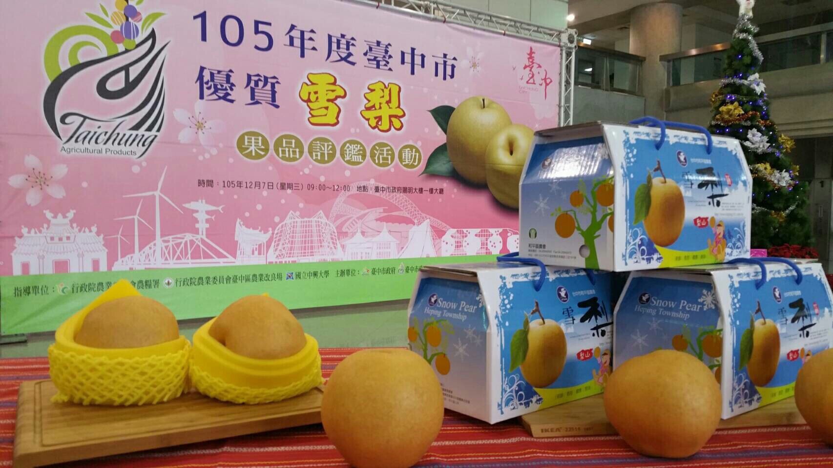 為維護消費者食的安全,並提升雪梨栽培技術及果品品質,台中市政府輔導和平區農會今(7)日舉辦「105年台中市優質雪梨評鑑活動」,吸引74組產銷班農民報名參加,評鑑結果由和平區陳煌明榮獲第一名,成為本年度雪梨達人,農業局盼透過活動推廣雪梨,也讓更多人把握機會品嘗當季香甜多汁的在地果品。