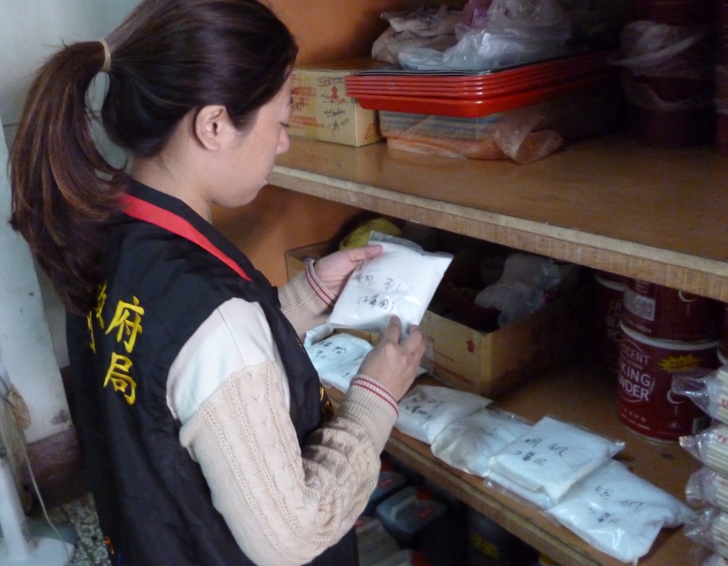 而全案再溯源追蹤,發現工業用明礬是經中盤商向清水區大興化工原料行購買,據大興化工行楊姓老闆說明,平時是整包(25Kg/包)售出,因該中盤商要求小包裝(450g/包)才客製分裝,不知是賣給早餐店使用;經上下游追蹤比對,該工業用明礬未發現流入其他食品業中。