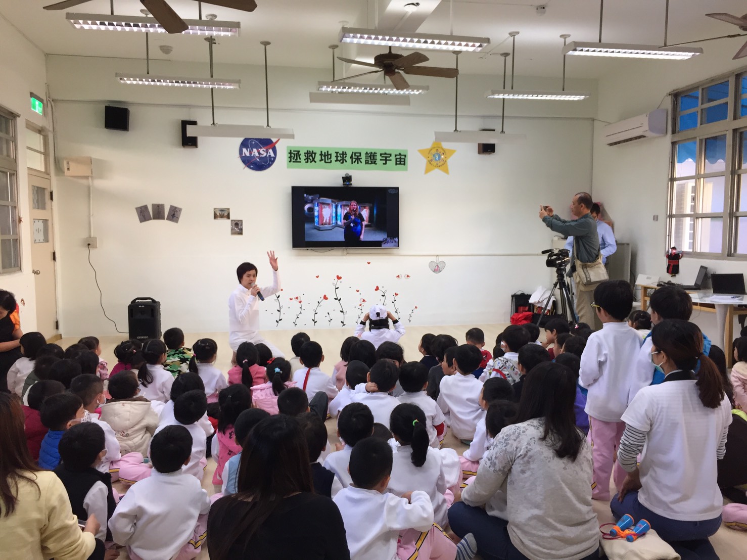 今日幼兒園現場氣氛熱絡,小朋友們看到NASA太空總署中控中心的主任出現在螢幕上,都驚喜又興奮的和太空人打招呼。台中市政府教育局專門委員方炳坤也到場與小朋友一起體驗太空之旅。他表示,透過這樣的方式,能引導幼兒進行科學探索,同時也發展國際教育交流,提供幼兒很棒的多元文化與科學體驗。