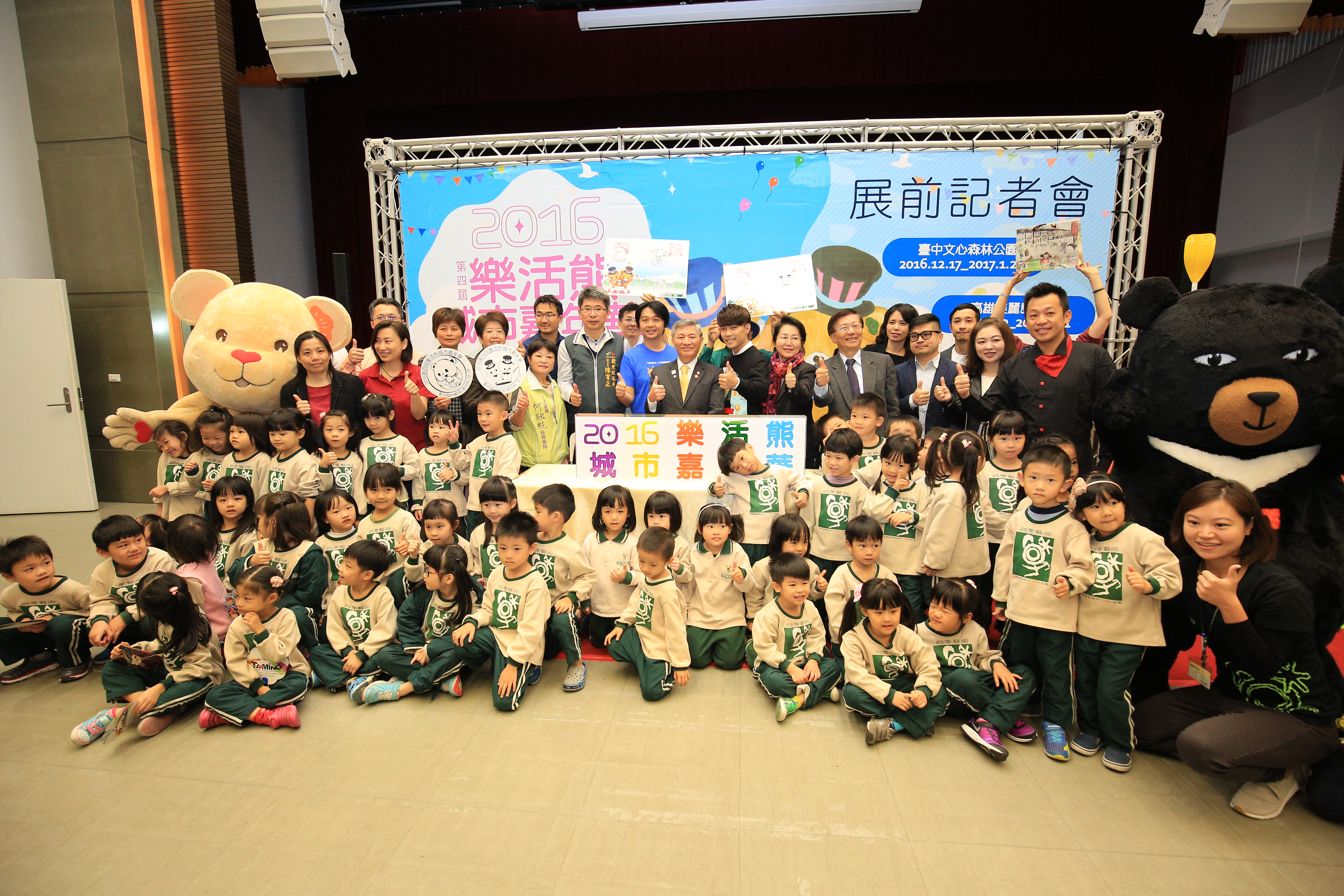由台中市政府經發局及中華民國台灣泰迪熊協會共同主辦的2016「第四屆樂活熊城市嘉年華」,12月17日至明年1月22日將在台中文心森林公園登場,展出百座模樣可愛的樂活熊,而為迎接台中2018世界花卉博覽會、2019東亞青奧,「花博森林公園」中還規劃手抱花博吉祥物石虎的花博熊,手持滑槳的東亞青熊,為活動宣傳暖身。副市長張光瑤力邀民眾踴躍參觀,也期盼未來持續舉辦,讓台中充滿歡樂。