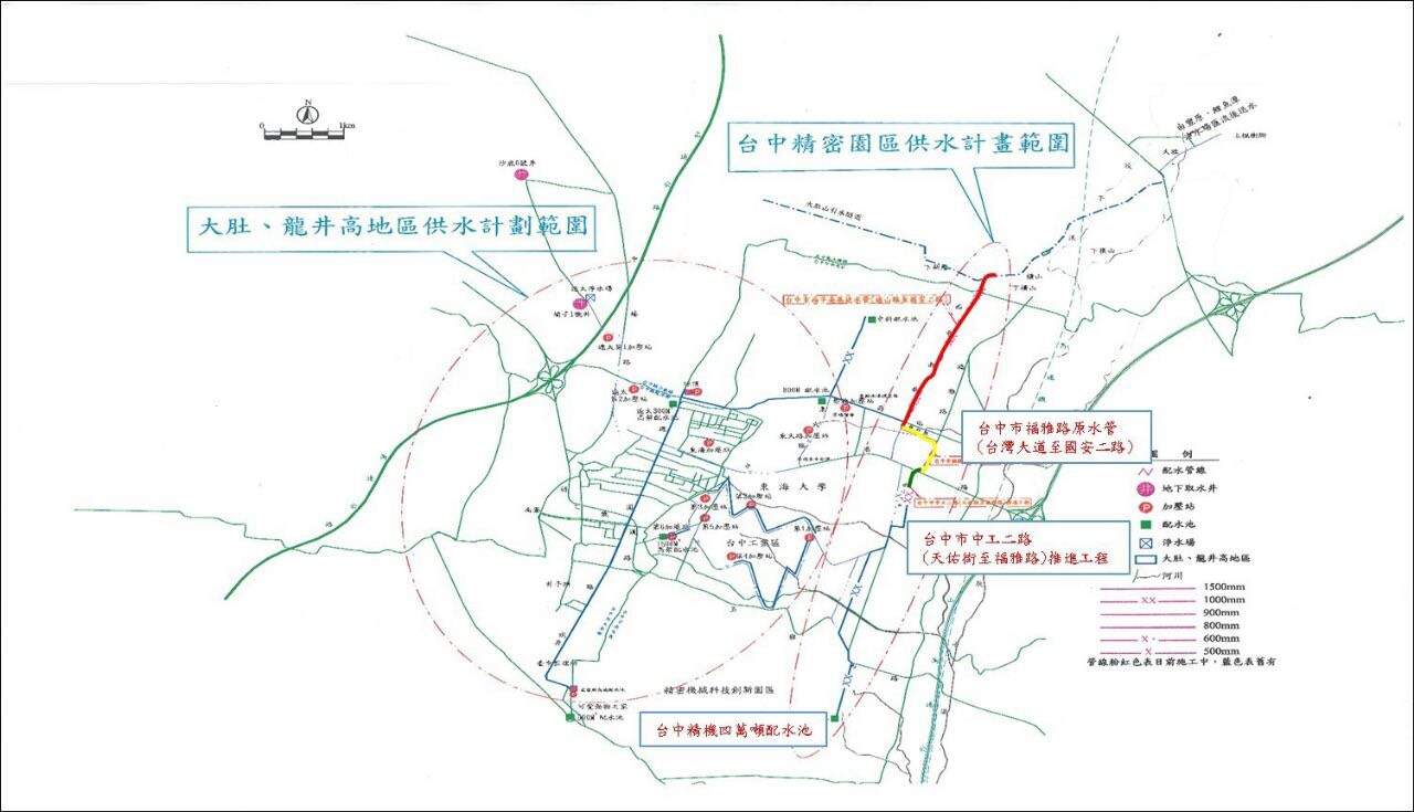 建設局表示,自來水公司自民國98年至106年,投入5.4億元經費辦理「台中市機密機械科技創新園區供水計畫」,穩定西屯、南屯、龍井、大肚等區域民生供水,並提供精密機械園區廠商進駐用水;計畫完成後,將可連結西屯、南屯、大肚及龍井高地區輸水網路,穩定區域民生用水,更提供鄰近的精密機械園區、台中工業區與中部科學園區用水所需,創造優質水源生活。