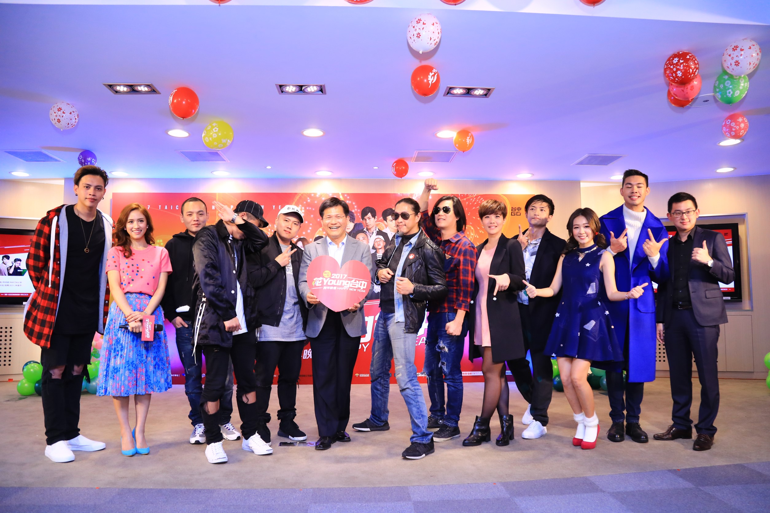 「2017花Young台中」跨年晚會今年以雙主場形式,於洲際棒球場及麗寶樂園第二停車場登場,藝人包含盧廣仲、玖壹壹、滅火器、董事長樂團、5566、溫嵐、MATZKA及張震嶽、MCHotDog熱狗、頑童MJ116組成的「兄弟本色」等,主持群則有KID、LULU、小蝦、邵庭、阿Ken、Sandy等,卡司陣容堅強;為迎接2018世界花博,后里現場的煙火還將融入花朵特效,帶來最豐富的視覺饗宴。