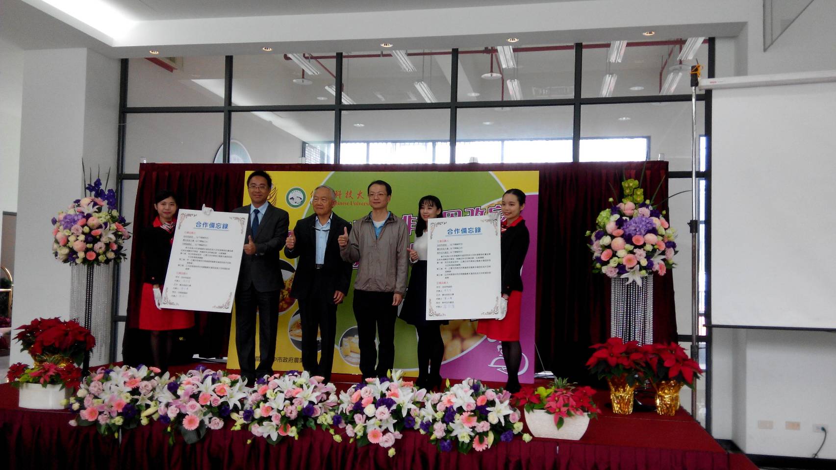 農業局今(15)日在僑光科技大學餐旅大樓一樓舉辦「105年度國產非基因改良大豆料理開發成果」發表會,並簽定餐廳採用食譜合作備忘錄,現場提供西式料理示範及試吃活動邀請與會貴賓品嚐,氣氛熱鬧。